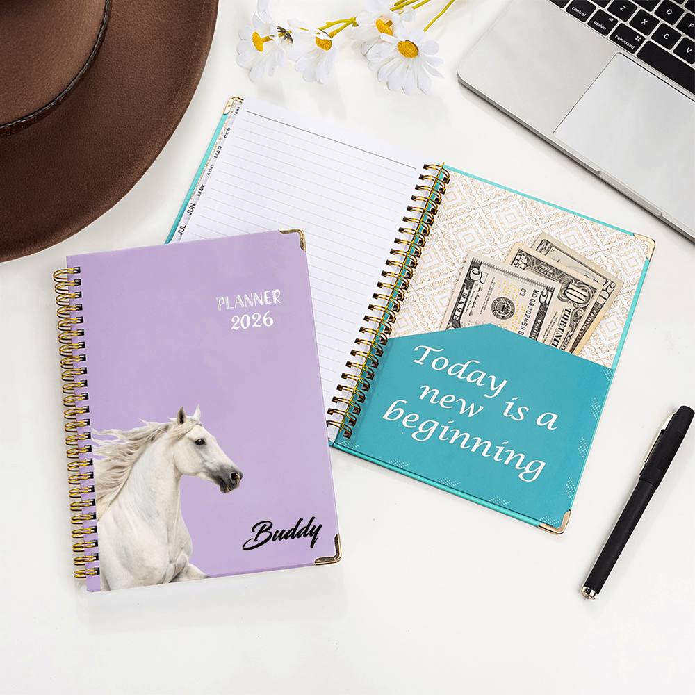 Personalized Horse Photo Planner 2026 Spiral A5 Notebook with Name and Weekly Monthly Planning Pages Birthday Gift for Horse Lovers