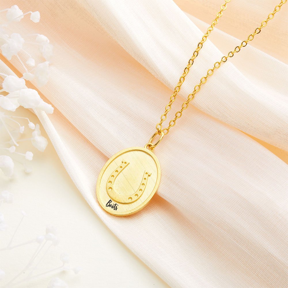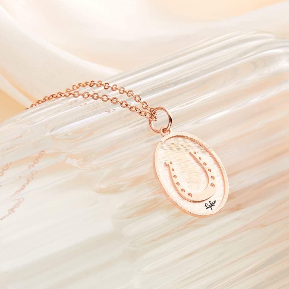 Horseshoes symbolize good luck. Legend has it that horseshoes are believed to attract luck and ward off evil forces. In addition, the horseshoe also symbolizes protection and safety. The horseshoe is considered a physical talisman that protects the wearer from evil and misfortunes of its deeds. Horseshoe necklaces also represent bonds of love and affection. You can personalize her name on this necklace to make the necklace more meaningful.