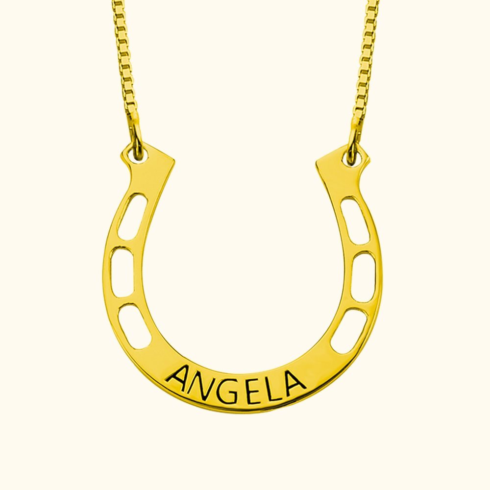 •This horseshoes necklace with engraving names delivers love “U” and lucky that will certainly amaze women. Carefully crafted, the horseshoes charm features six hollow-out oval shapes depicting the real horseshoes.