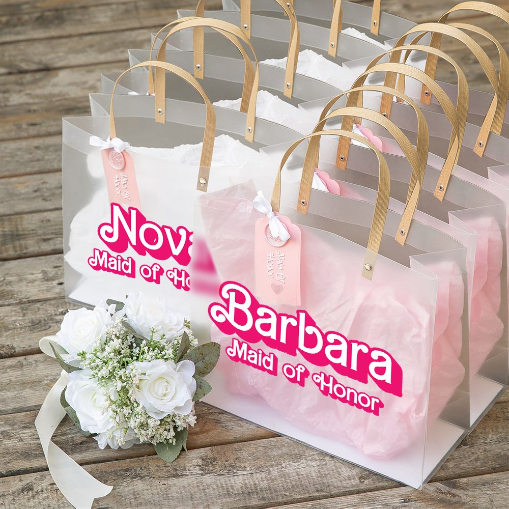 This personalized hot pink style tote bag is the ultimate accessory for any fashion-forward woman. Its vibrant color and trendy design make it a perfect choice for a wedding or bachelorette party gift. Whether used as a beach bag, shopping tote, or everyday purse, this bag is sure to turn heads wherever you go.