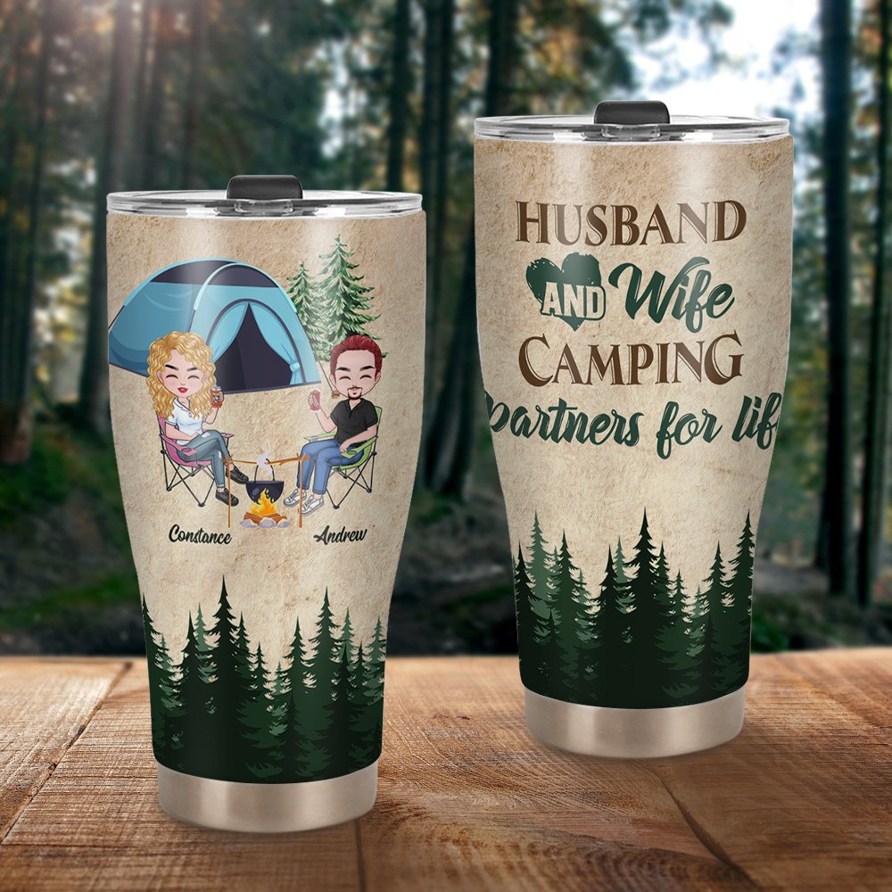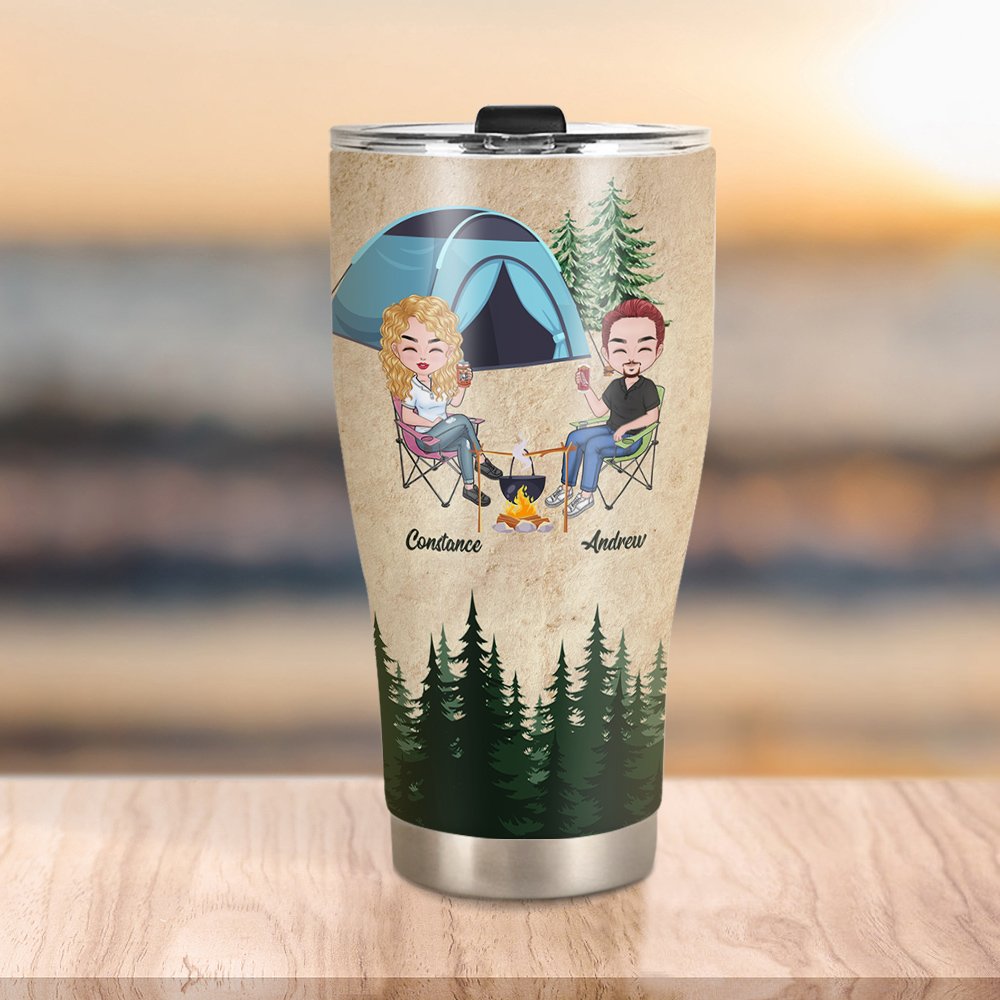 This is a tumbler designed around the theme of couples camping, with the personalized quote and characters, it is attractive for those who like camping or want to stand out from the crowd.