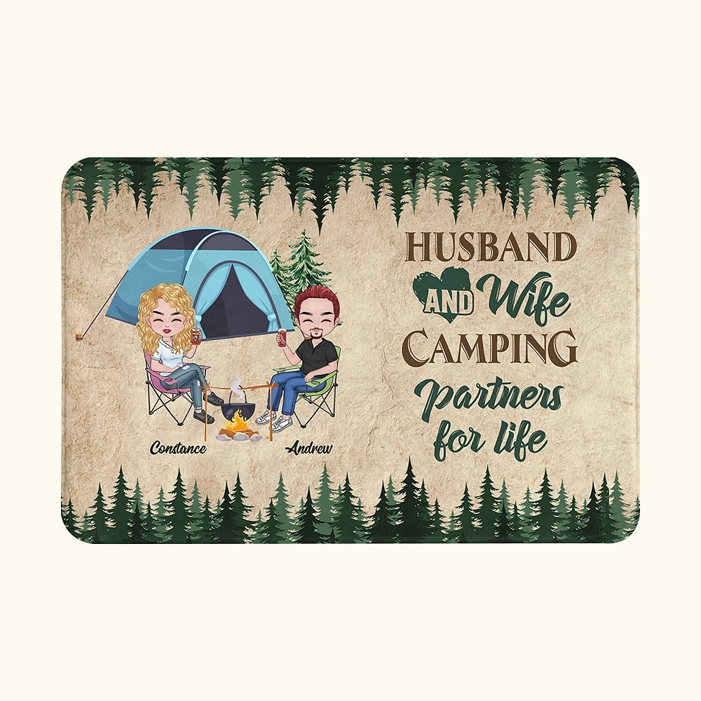 The message "Husband And Wife Camping Partners for Life" is beautifully printed on the doormat, reminding the couple of their everlasting love and the adventures they have shared.