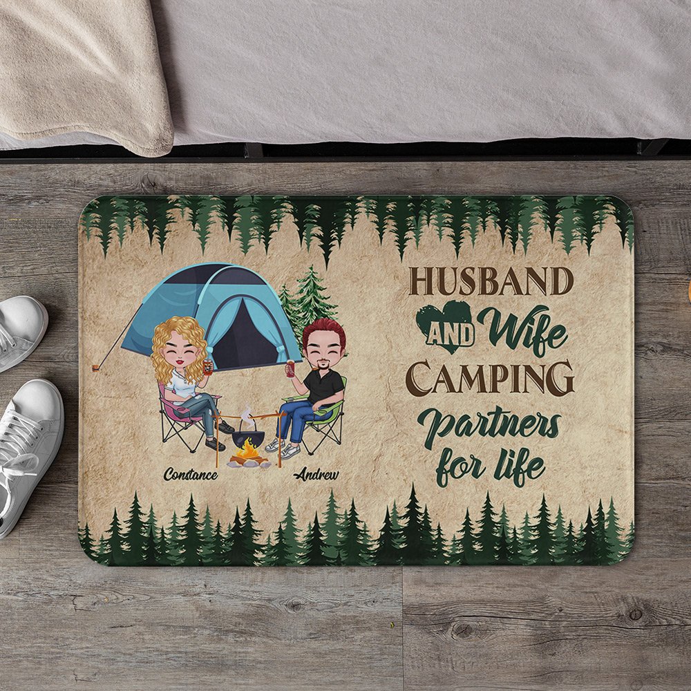 The message "Husband And Wife Camping Partners for Life" is beautifully printed on the doormat, reminding the couple of their everlasting love and the adventures they have shared.