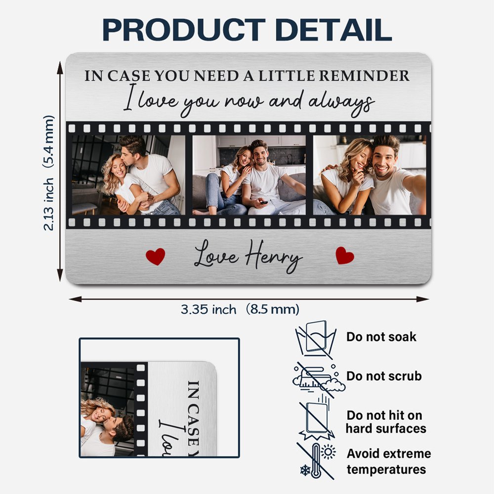 Features the touching sentiment "In Case You Need A Little Reminder, I Love You Now And Always" paired with three cherished photos. The classic videotape-inspired layout creates a perfect blend of nostalgia and romance. The timeless message serves as a constant reminder of your enduring love. Each card tells a unique love story through carefully chosen words and images.