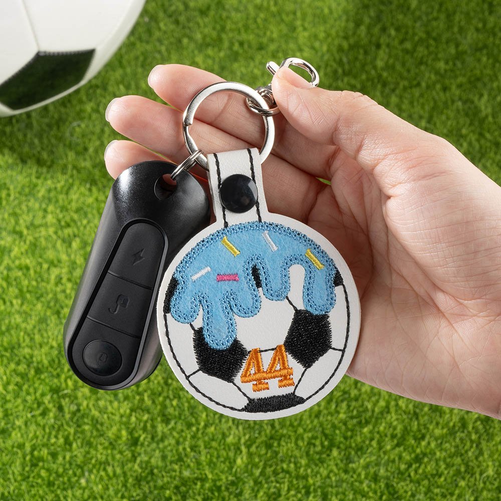 This keychain perfectly combines the elements of ball sports and melted ice cream. We offer 6 sports styles, whether it is baseball, football, basketball, softball, soccer, or volleyball. Each one shows a unique sports style through vivid embroidery and color matching. The keychain can also be customized with text, making every detail full of personality and warmth.