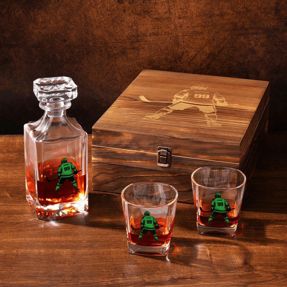 Personalized Ice Hockey Cartoon Character Whiskey Decanter with Name and Number Birthday Gift for Men Ice Hockey Players