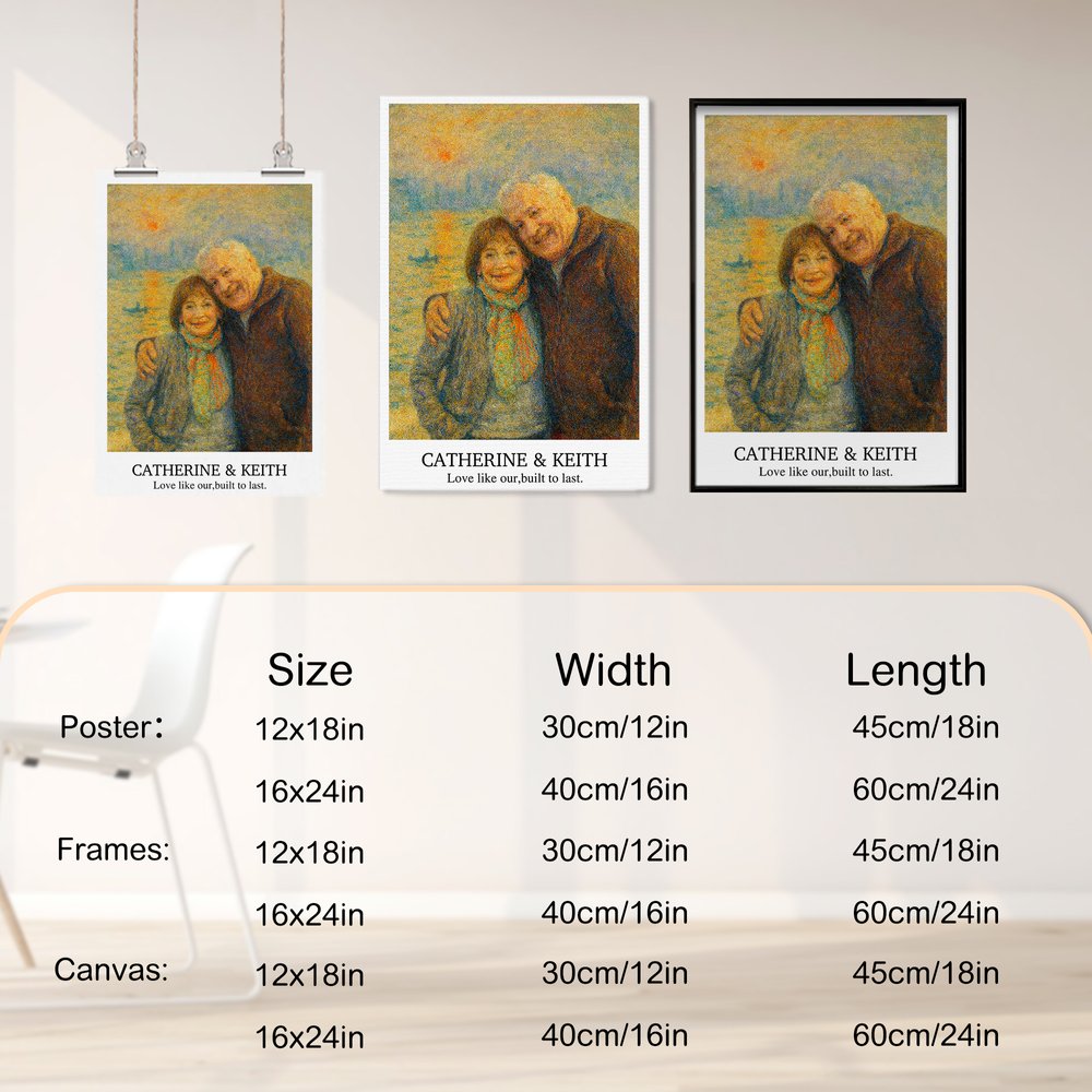 This poster features a custom photo transformed into a stunning oil-painting visual with an impressionist sunrise style. The rich, layered colors and dynamic brushstrokes create a dreamy atmosphere. At the same time, the sunrise background symbolizes new beginnings and hope, integrating your loved one's likeness into the design to represent a future filled with brightness and joy. Add a custom name and text for a personalized touch, turning it into a one-of-a-kind artwork.