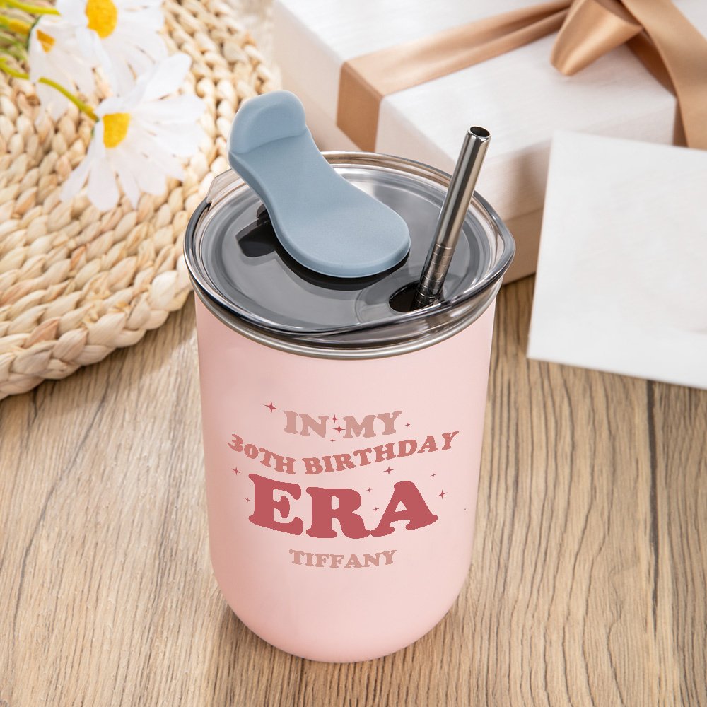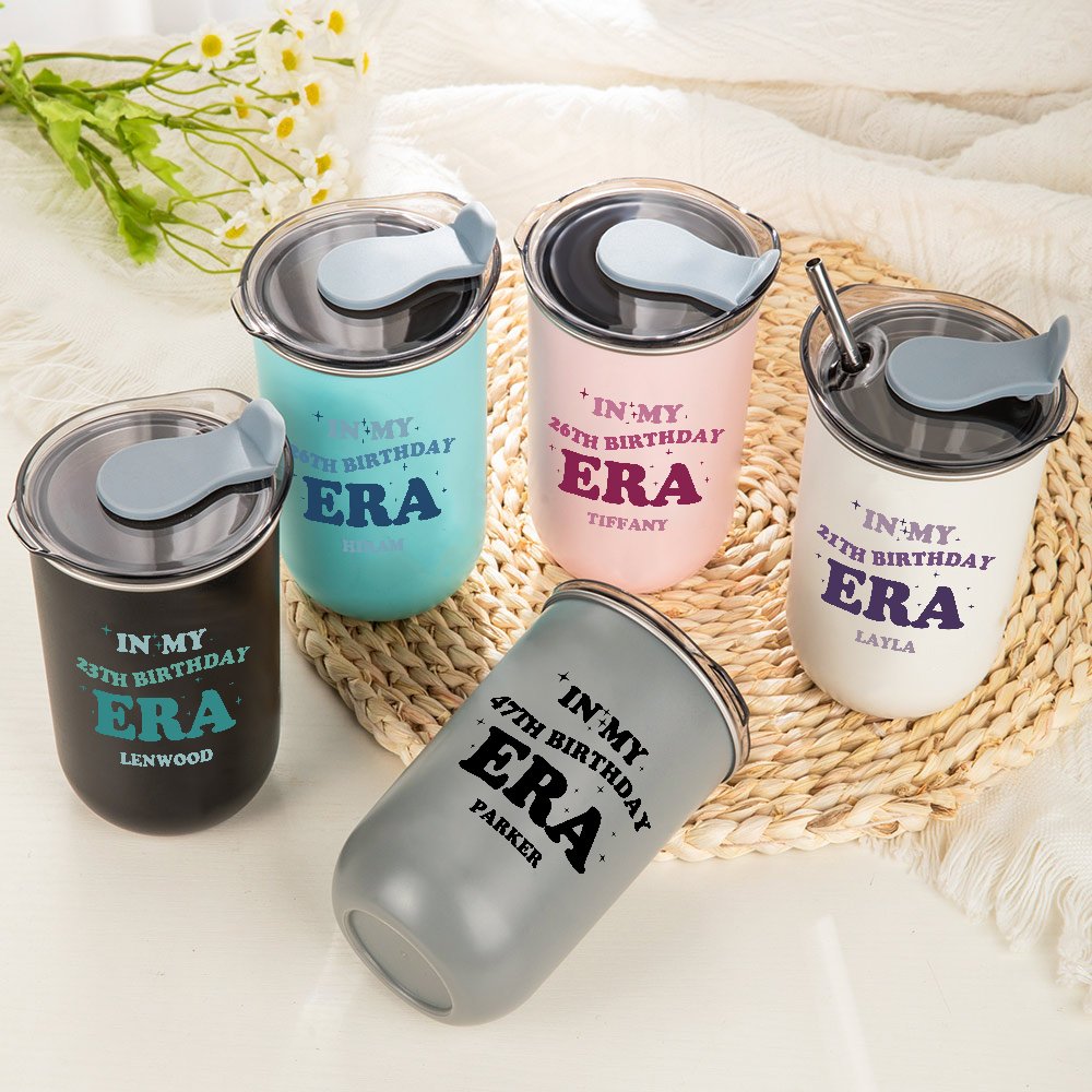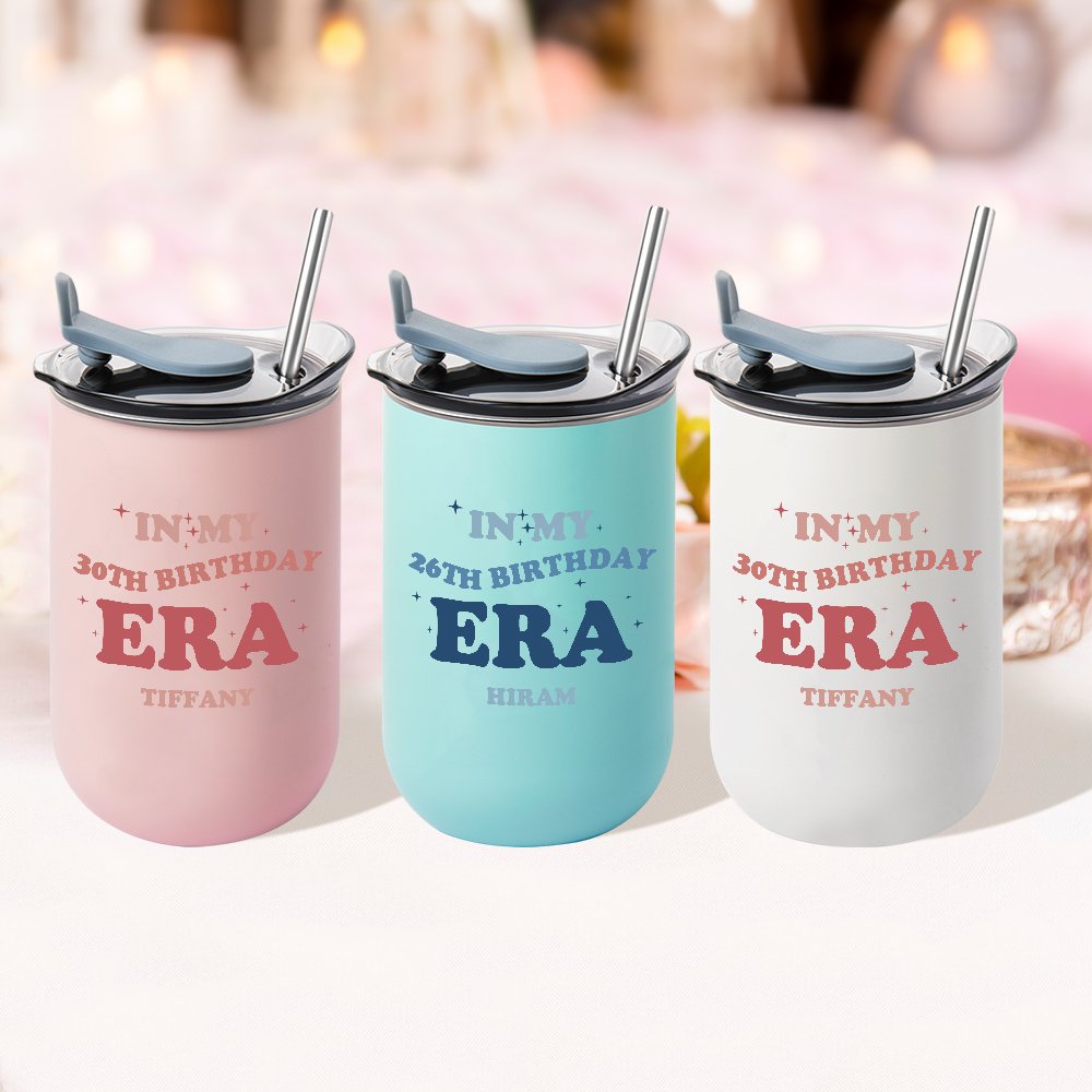 This Tumbler features a "My Birthday Era" theme, adorned with starry accents, making it perfect for celebrating all kinds of birthdays. The smooth, curved eggshell shape, combined with customizable names, adds a special touch to birthday celebrations.