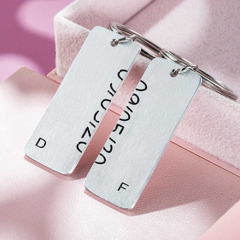Meaningful gift: The novelty cute men women keychain can be hand-stamped with the date and 2 initials. How amazing and romantic it is.