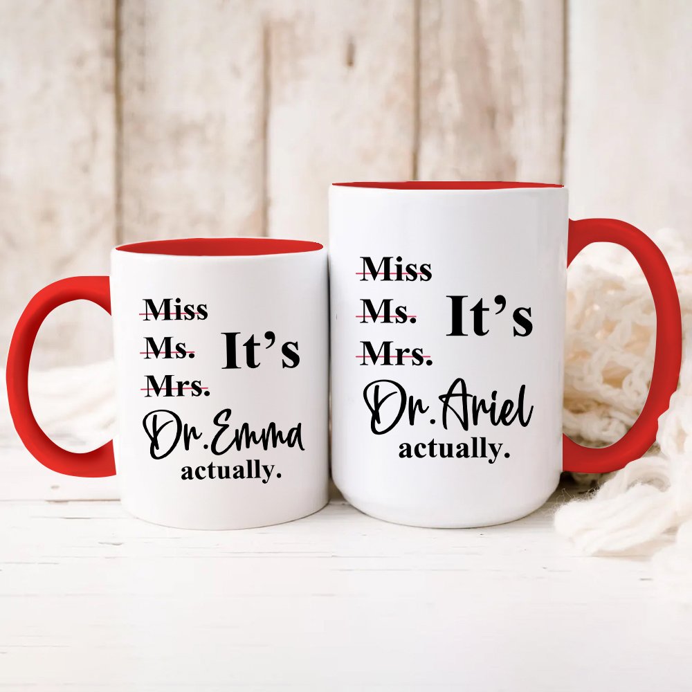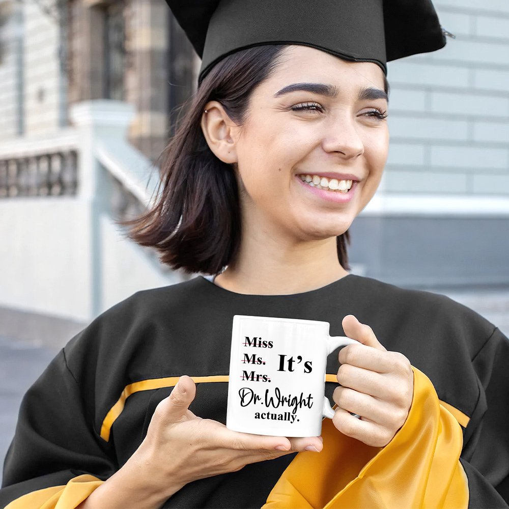 The front of this mug adopts a simple pure text style, with "Miss", "Ms." and "Mrs." crossed out with a red line, thus highlighting the title of PhD, which is unique and stylish. You can also add the name to it, making it a unique work of art that both highlights personality and conveys blessings, not only showing a sense of humor but also respecting the dedication and perseverance required to obtain a doctorate.