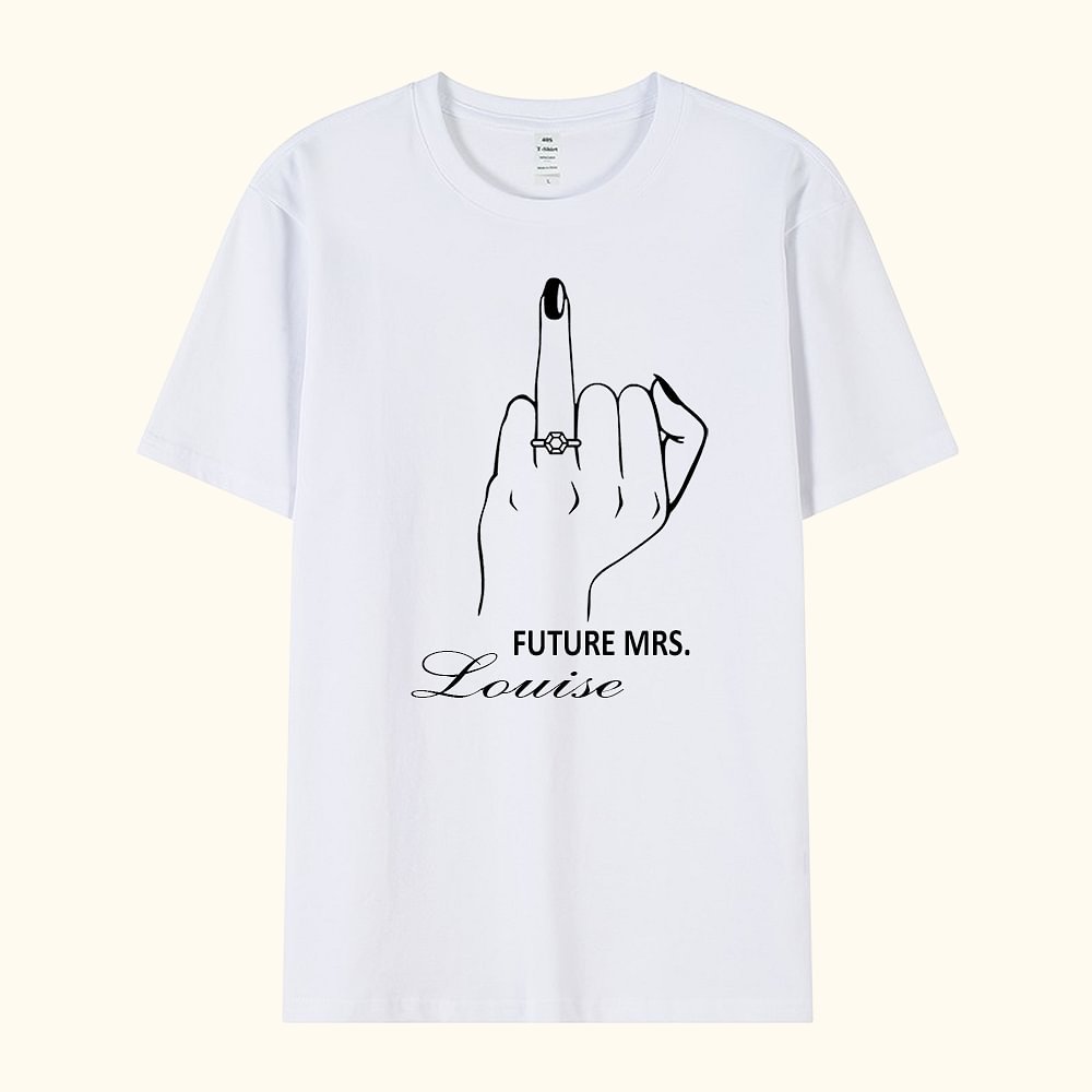 T-shirts express their status as engaged or married with a funny gesture with a diamond ring, and share the joy with friends and besties. It is also suitable to wear such clothes to bachelor parties.