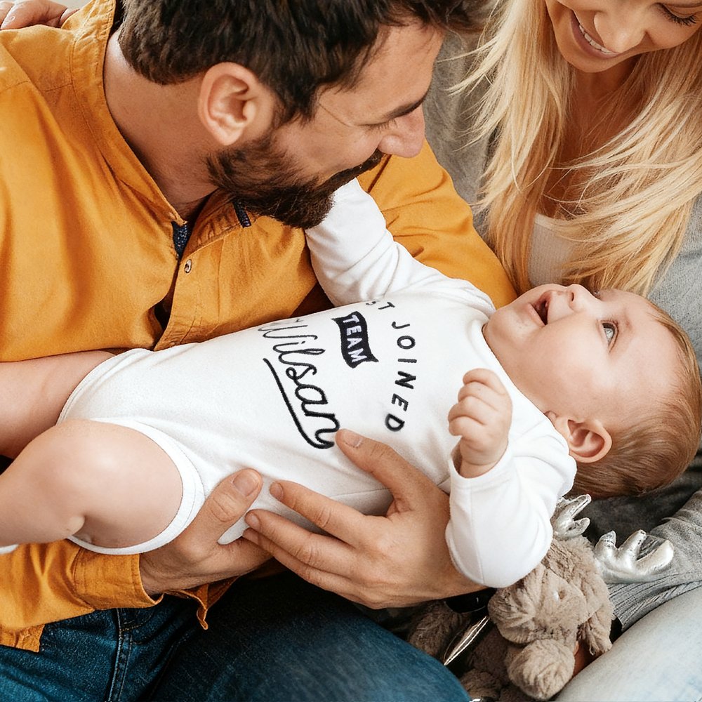 Centered around the “Just Joined Team” theme, this collection features customizable baby names and family surnames. Its style blends playful cuteness with a sense of family unity, perfectly capturing the joy of welcoming a newborn. More than just clothing, these pieces serve as commemorative keepsakes marking the arrival of new life—combining practicality with sentimental value.