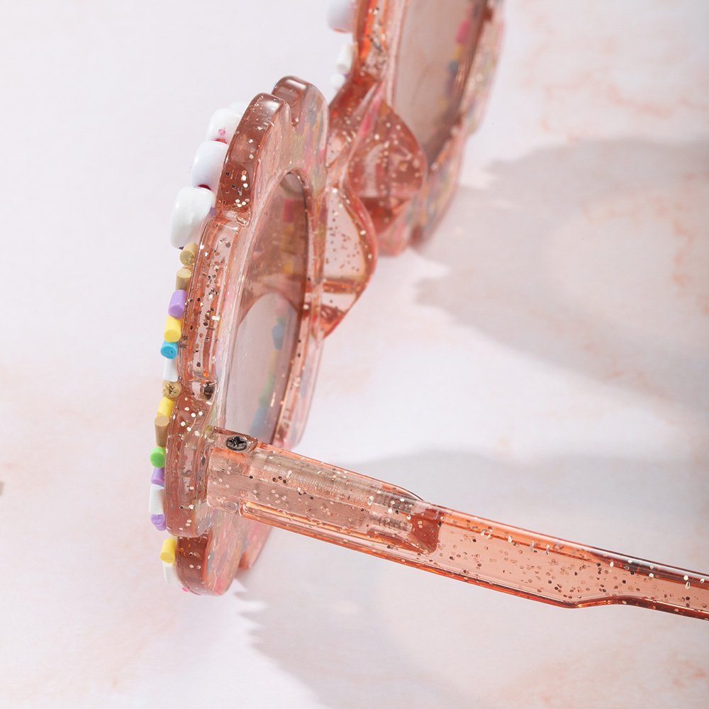 [GIFT OCCASION]: These personalized sunglasses make a child feel so special! The sprinkles are rubber sprinkles (not real) and are glued on very well! They also make great birthday party favors or flower girl gifts. Perfect for the 2-6 years old kid.