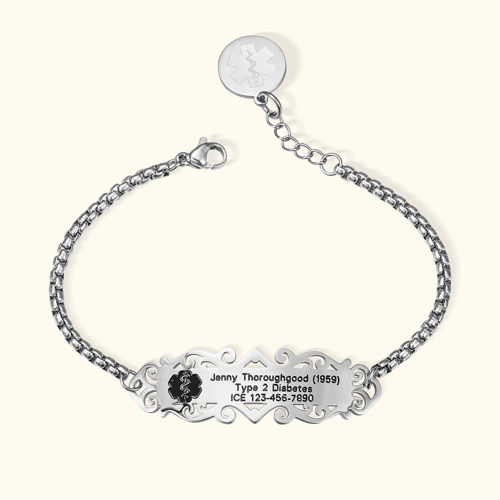 The personalized medical alert ID bracelet is the perfect combination of safety and style. These bracelets are made of high-quality stainless steel, brass, or sterling silver. You can choose which material you like. Besides looking elegant, these bracelets are useful in emergencies.