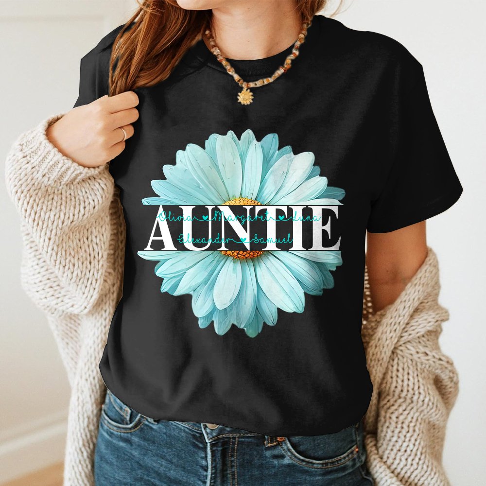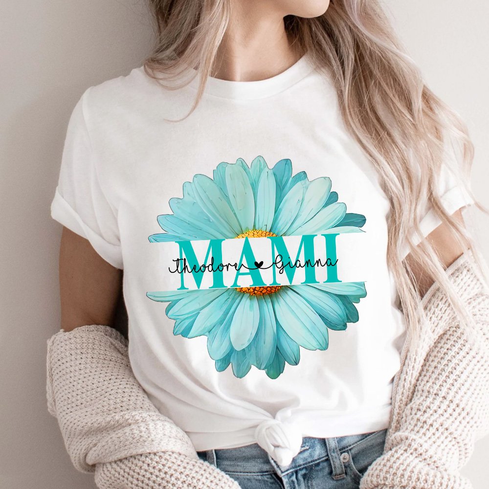 This clothing is printed with a fresh light blue daisy, symbolizing pure and selfless love. The center of the daisy can be customized with a nickname and 1-8 kid's names. This special design is full of family warmth and intimacy. We offer two styles, T-shirts and sweatshirts, each with 13 colors to choose from, giving you more choices.