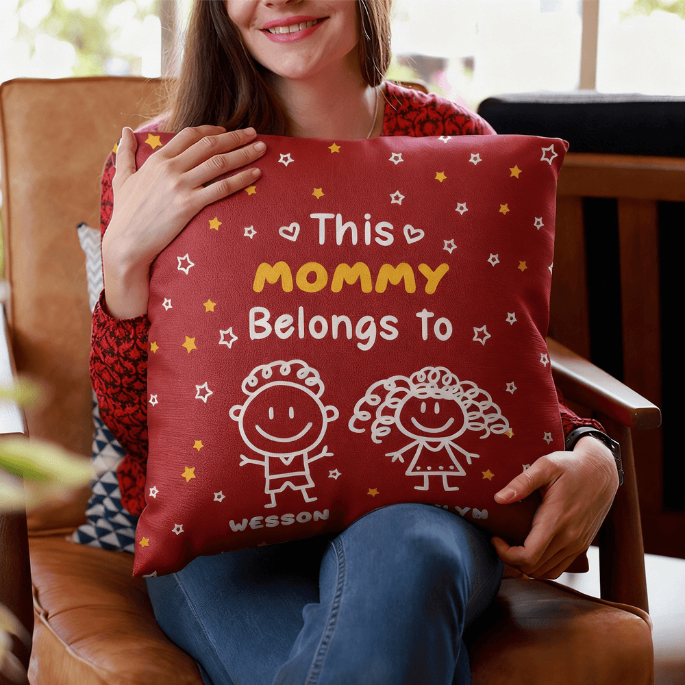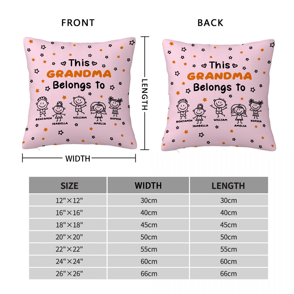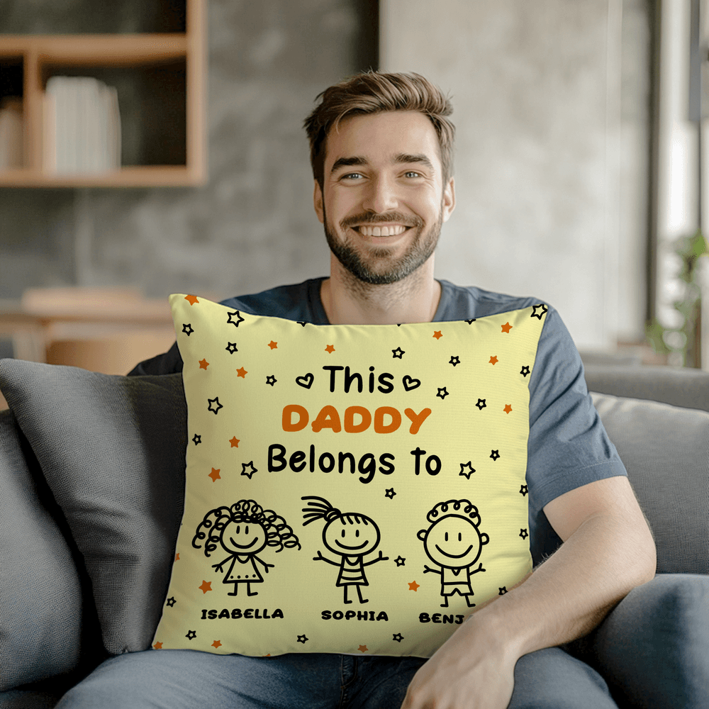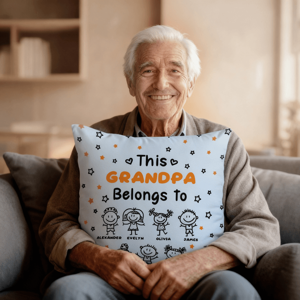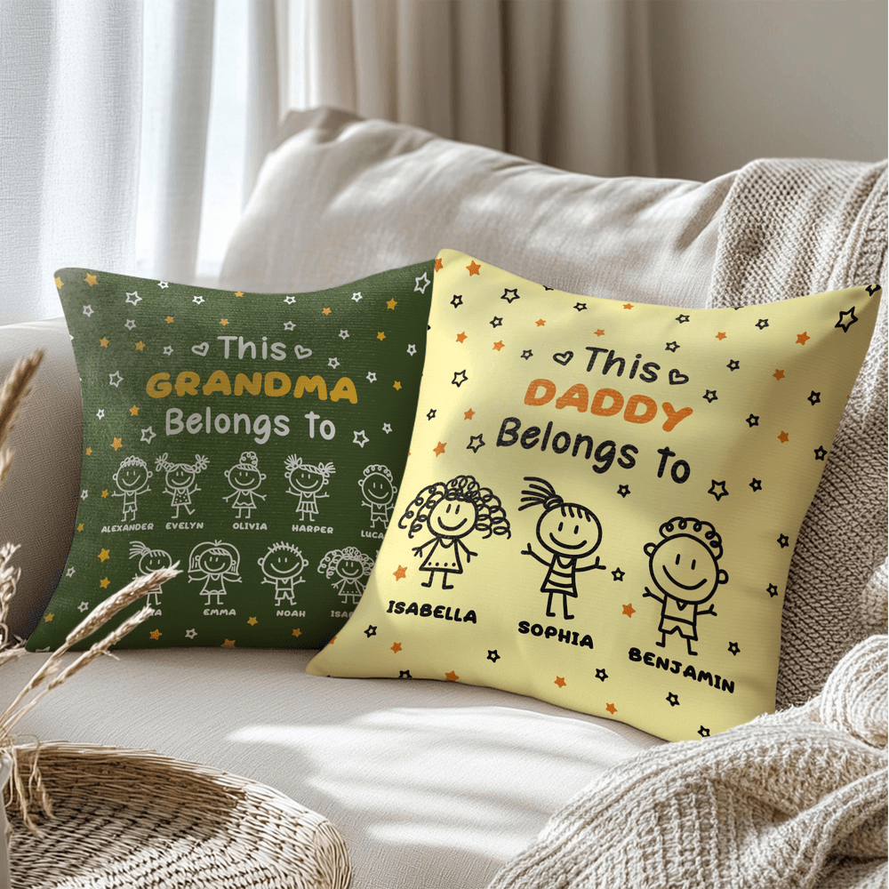 Featuring playful line-art kids' characters, customizable names, and a “This Grandpa/Grandma/Daddy/Mommy Belongs To” design that highlights each child and their close relationship, this throw pillow cover is a charming focal point in any room.