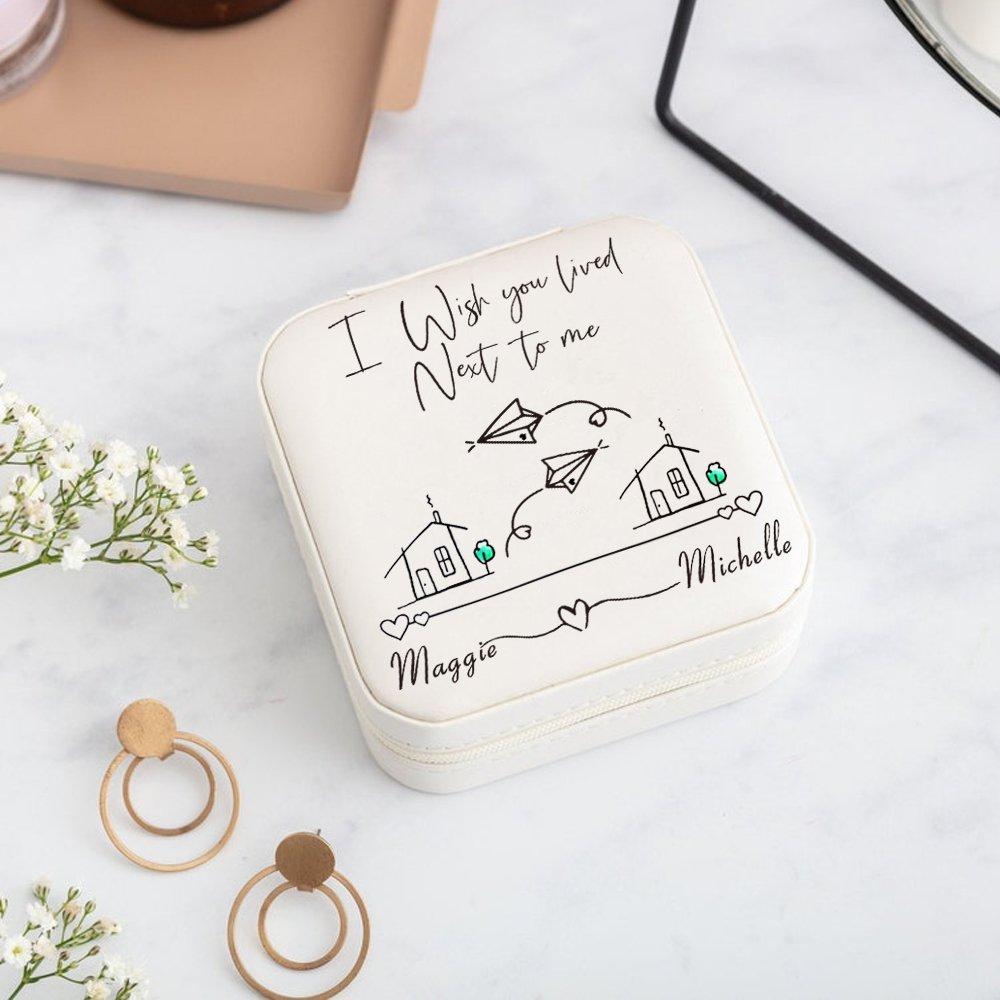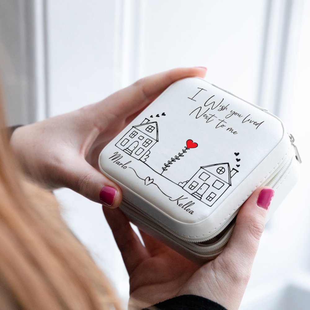 Composed of PU leather, beaded flannel, and zipper. Simple colored paintings on the outside, a warm little house, the beautiful wish of "I wish you lived next to me", and adding the names of two people, represent the strength and beauty of our previous relationship.