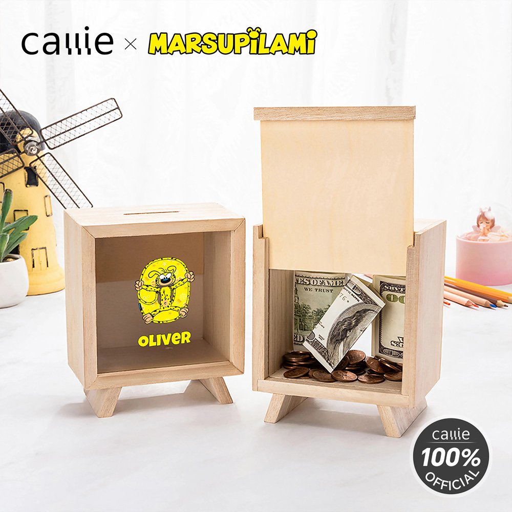 Personalized Long-Tailed Leopard Marsupilami Clear Window Money Box Piggy Bank with Name Christmas Birthday Gift for Kids | Callie × Marsupilami®