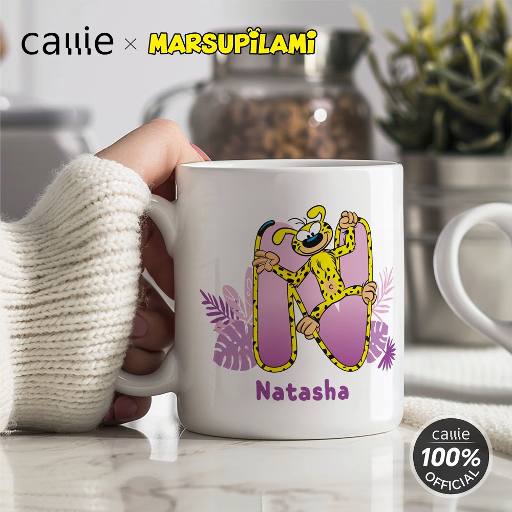 Created by Belgian cartoonist André Franquin in 1952, Marsupilami is a jungle-dwelling creature with yellow fur, black spots, and a super flexible long tail. It’s famous for its iconic "houba!" shout, tail-bouncing moves, and a mix of cheetah agility and monkey cleverness. Featuring the beloved IP character Matthew the Longtail Leopard, this charming mug offers 26 different initial letter patterns to choose from, allowing you to select the one that best represents you or your loved ones. It also supports personalization with a custom name, making each mug a one-of-a-kind expression of personality and affection.