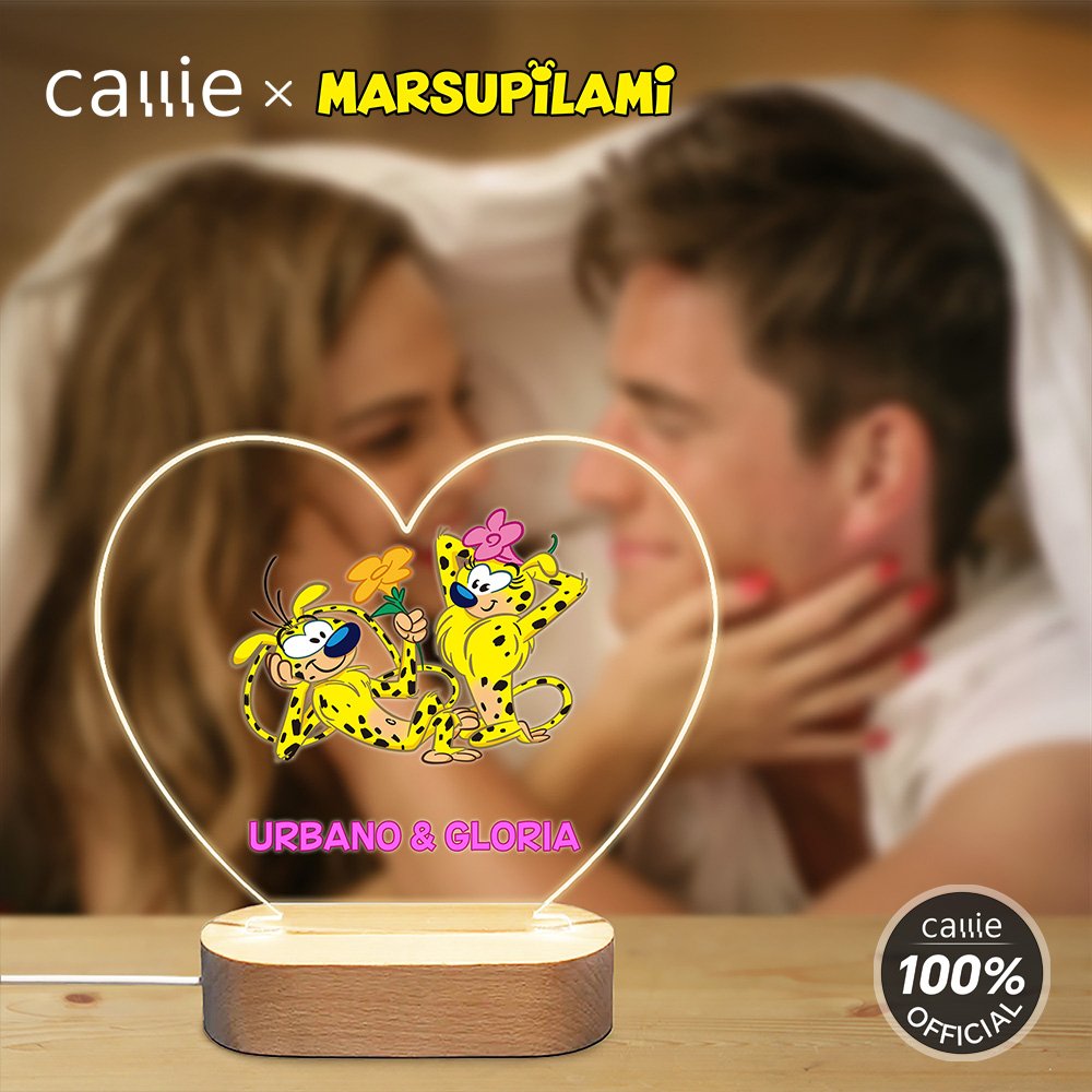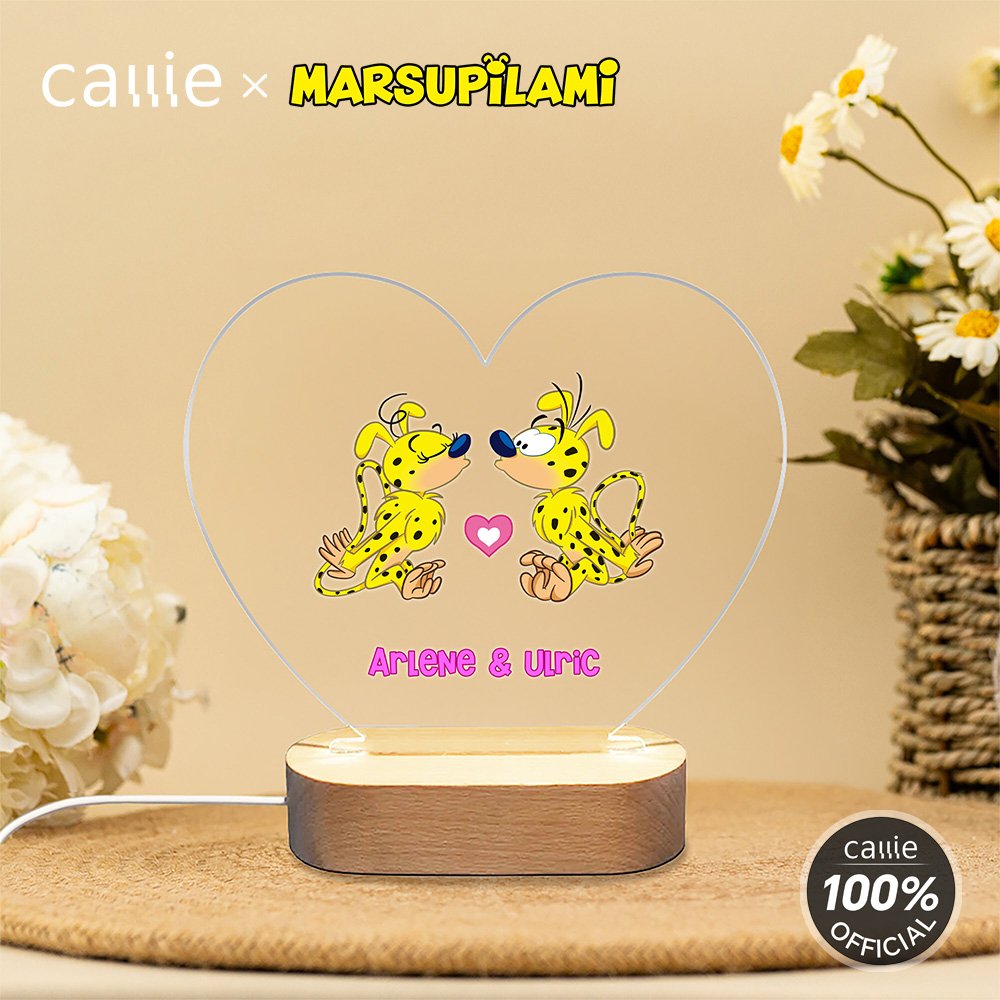 Created by Belgian cartoonist André Franquin in 1952, Marsupilami is a jungle-dwelling creature with yellow fur, black spots, and a super flexible, long tail. This night light lets you craft a playful, personalized piece for Marsupilami fans or couples. Choose 1 of 6 cute Marsupilami cartoon patterns, and add custom names — turning a basic night light into a unique, character-filled decor item.