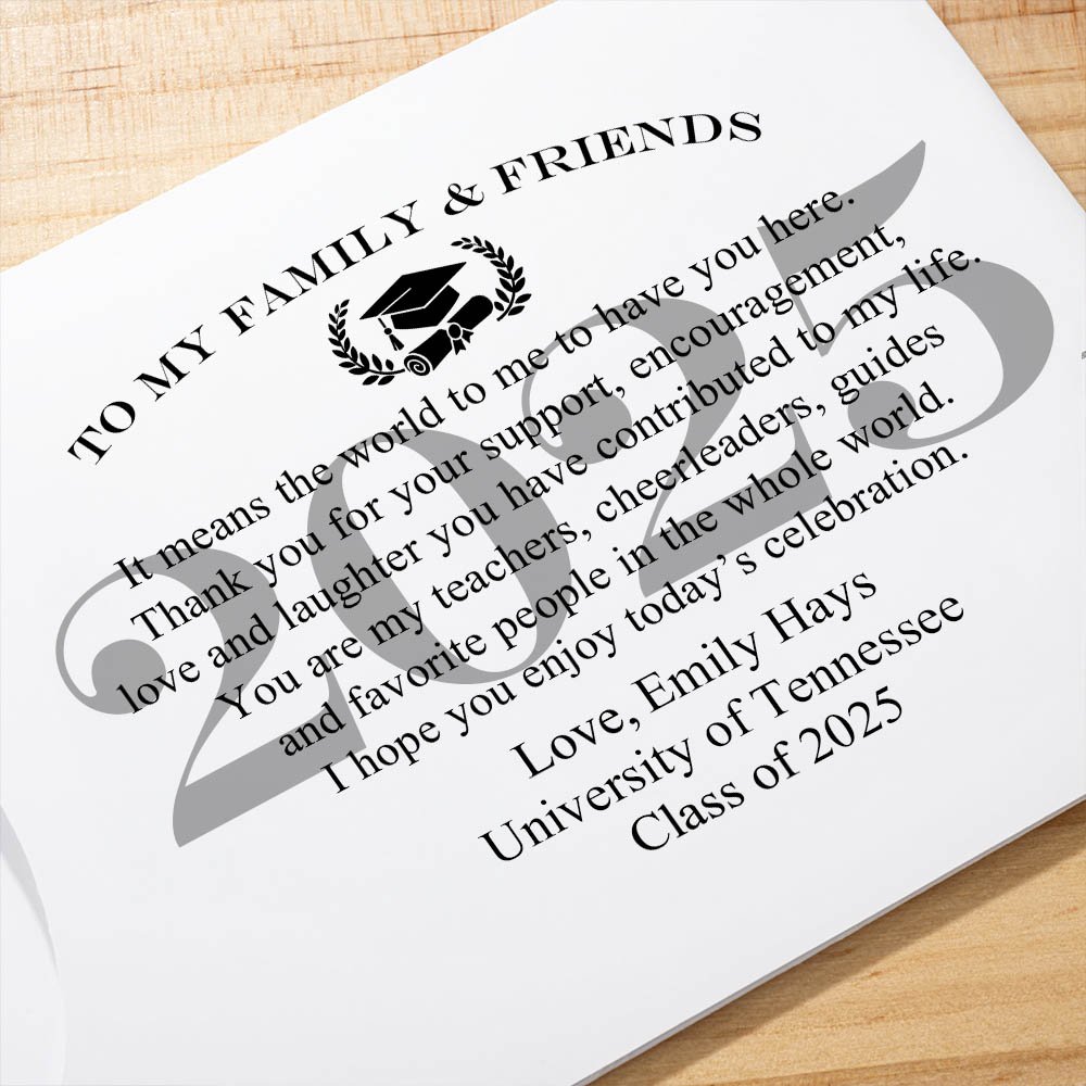 These lottery ticket envelopes are thoughtfully designed with a thank-you message on the cover. Each envelope can be adorned with a ribbon color, adding a touch of ceremony and elegance to the presentation. You can customize each envelope with the graduate's name, graduation year, and school name, making them a memorable keepsake from the graduation party.