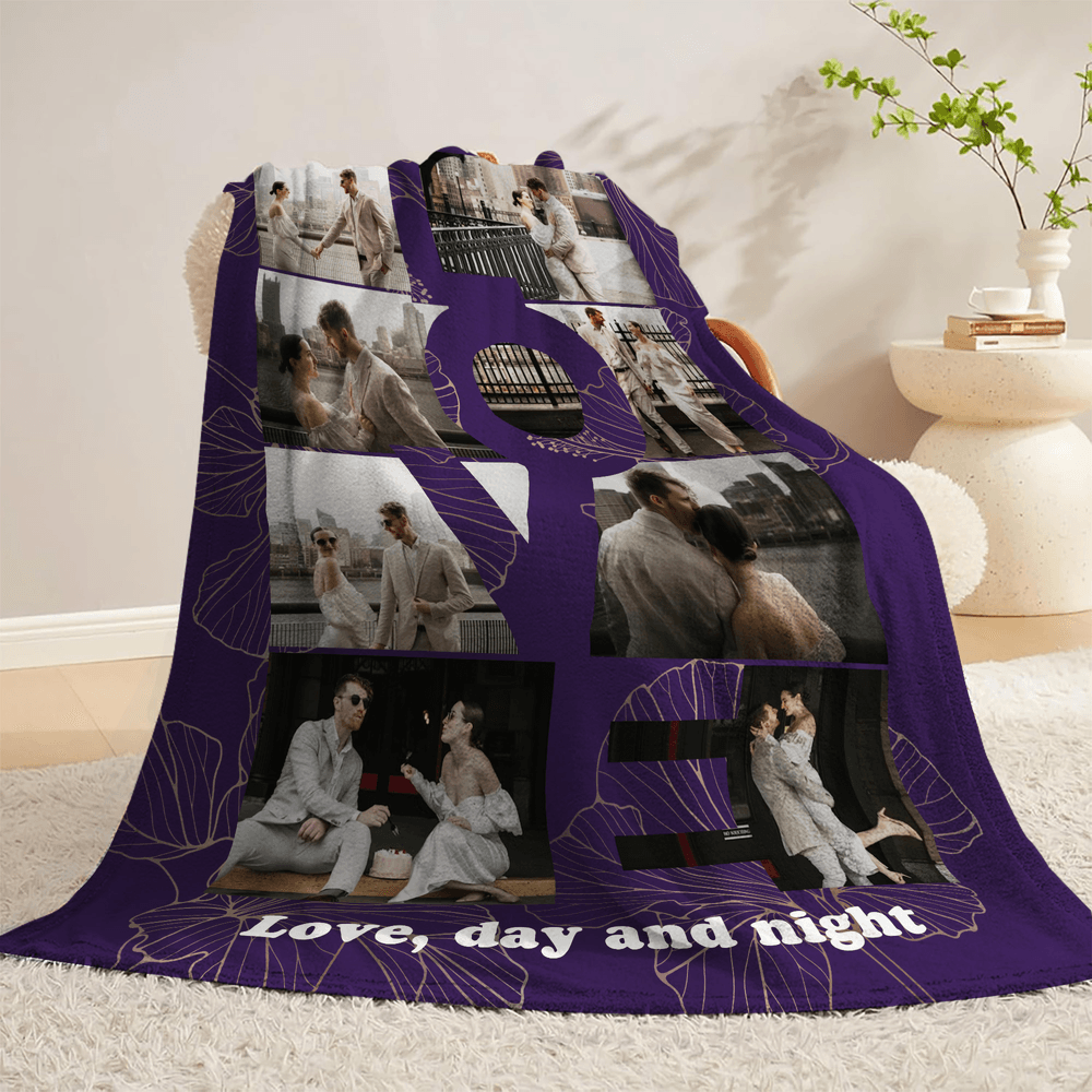 Personalized Love 10 Photos Soft Throw Blanket with Text Home Decor Valentine's Day Birthday Gift for Couple