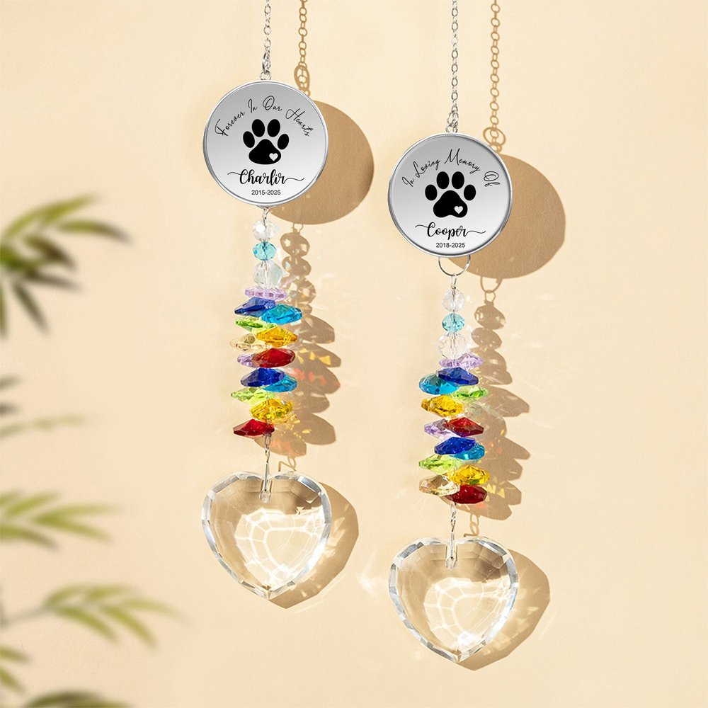 Our captivating light catcher pendant serves as a heartfelt tribute to your beloved pet. Each pendant can be customized to include your pet's name, date of passing, and a personal message, allowing you to encapsulate your endless love and memories, especially emotionally. It’s a unique way to commemorate your furry friend who has crossed the rainbow bridge.