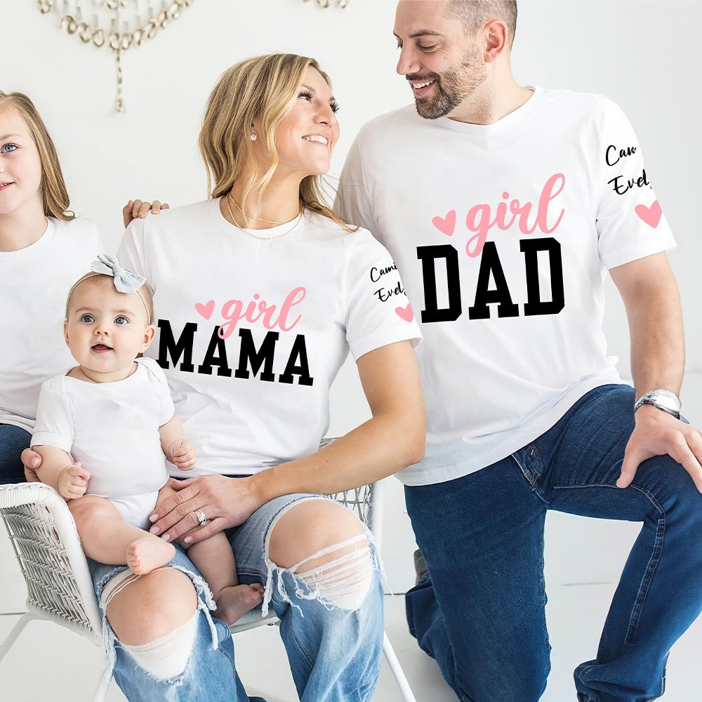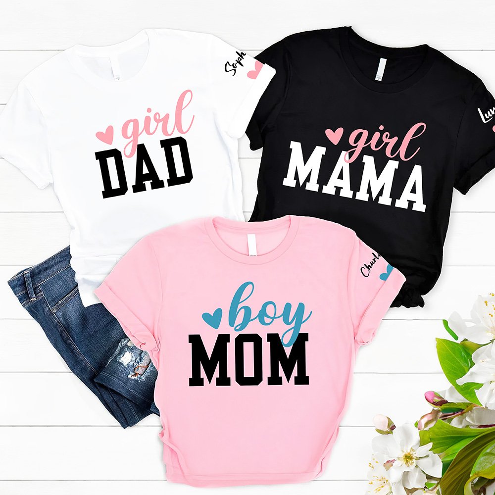 The design of this clothing is irresistible. A simple love heart and "boy" or "girl" pattern is printed on the front to distinguish between men's and women's styles, and you can also customize the title to tailor it for each family role. You can add 1-6 family members' names on the sleeves to show the unity, warmth and love of the family.