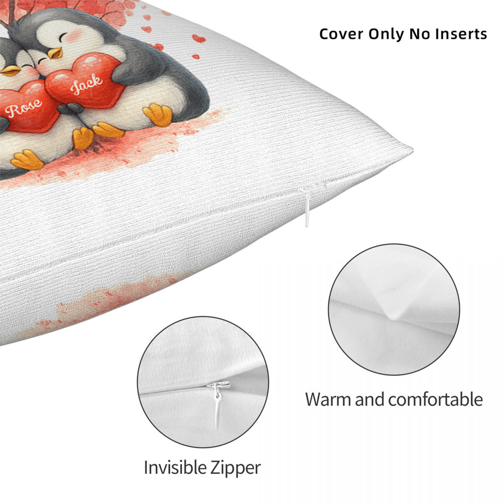 Personalized Love Tree Penguin Couple Soft Throw Pillow Cover with Names and Date Wedding Anniversary Gift for Couples