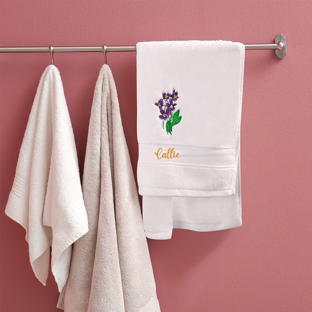 This soft 100% cotton towel features a beautifully embroidered birth flower and can be personalized with a name, making it a truly unique and meaningful gift.