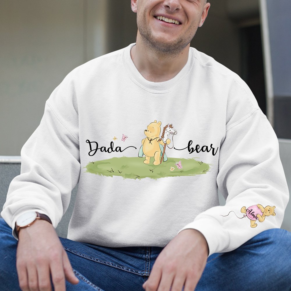 This sweatshirt features a charming classic Winnie the Pooh created by the renowned author A. A. Milne and has captured the hearts of generations. Choose from various child designs based on the number of kids in your family, and personalize the sweatshirt with their names on the sleeve. This unique touch allows for a one-of-a-kind garment that highlights the special relationships within your family.