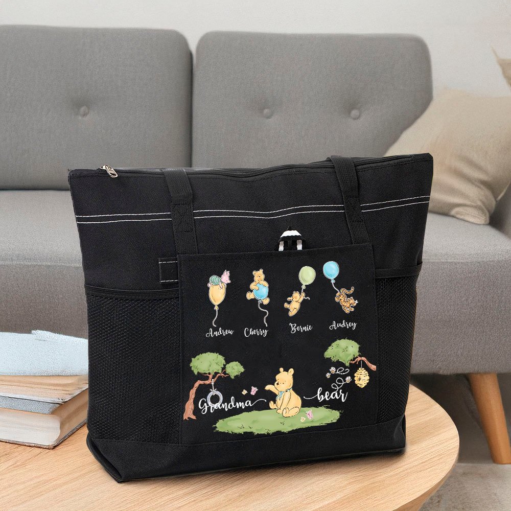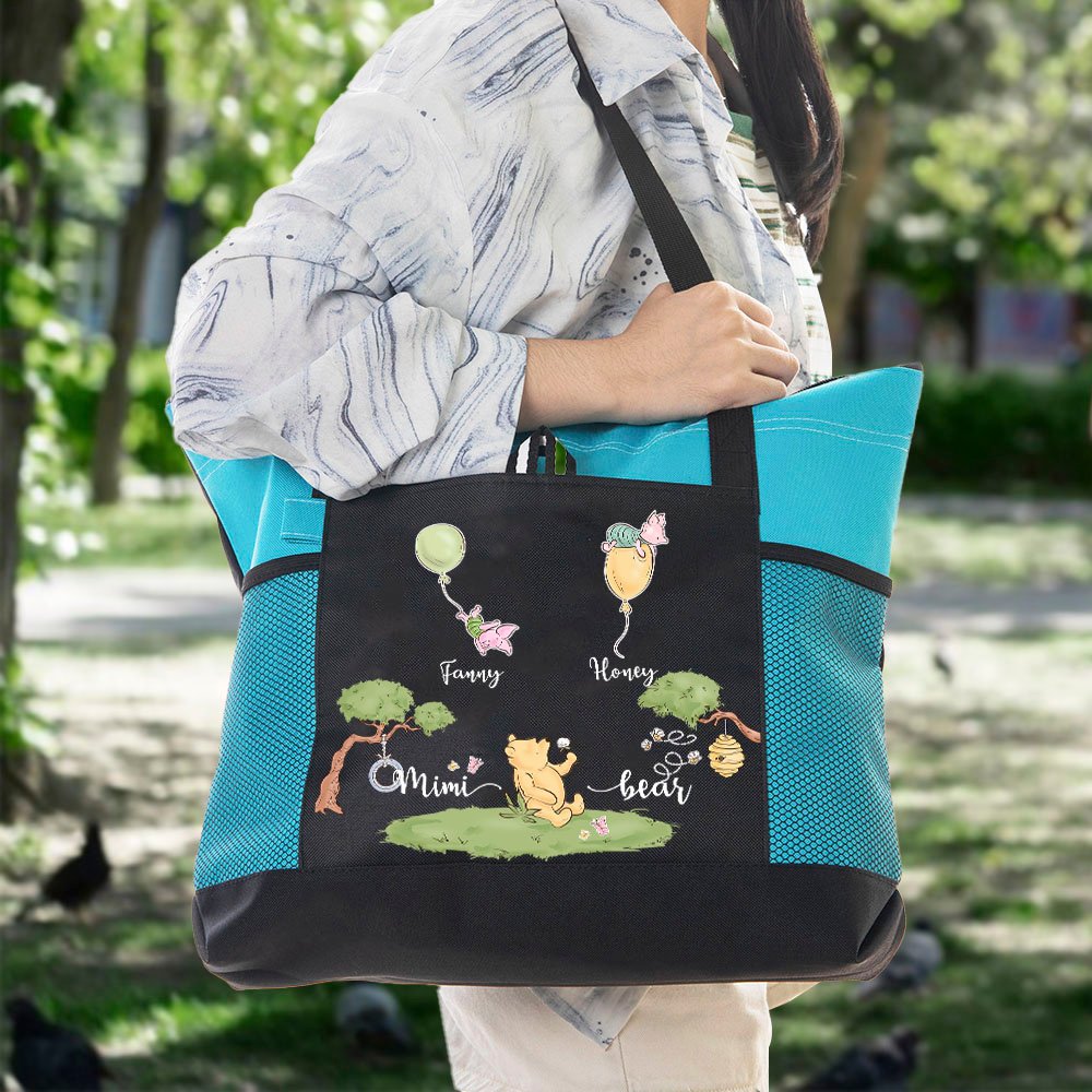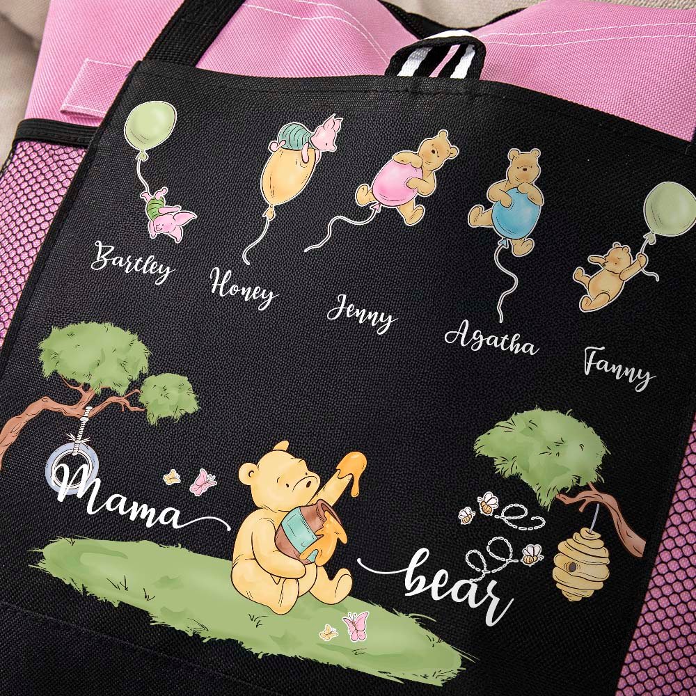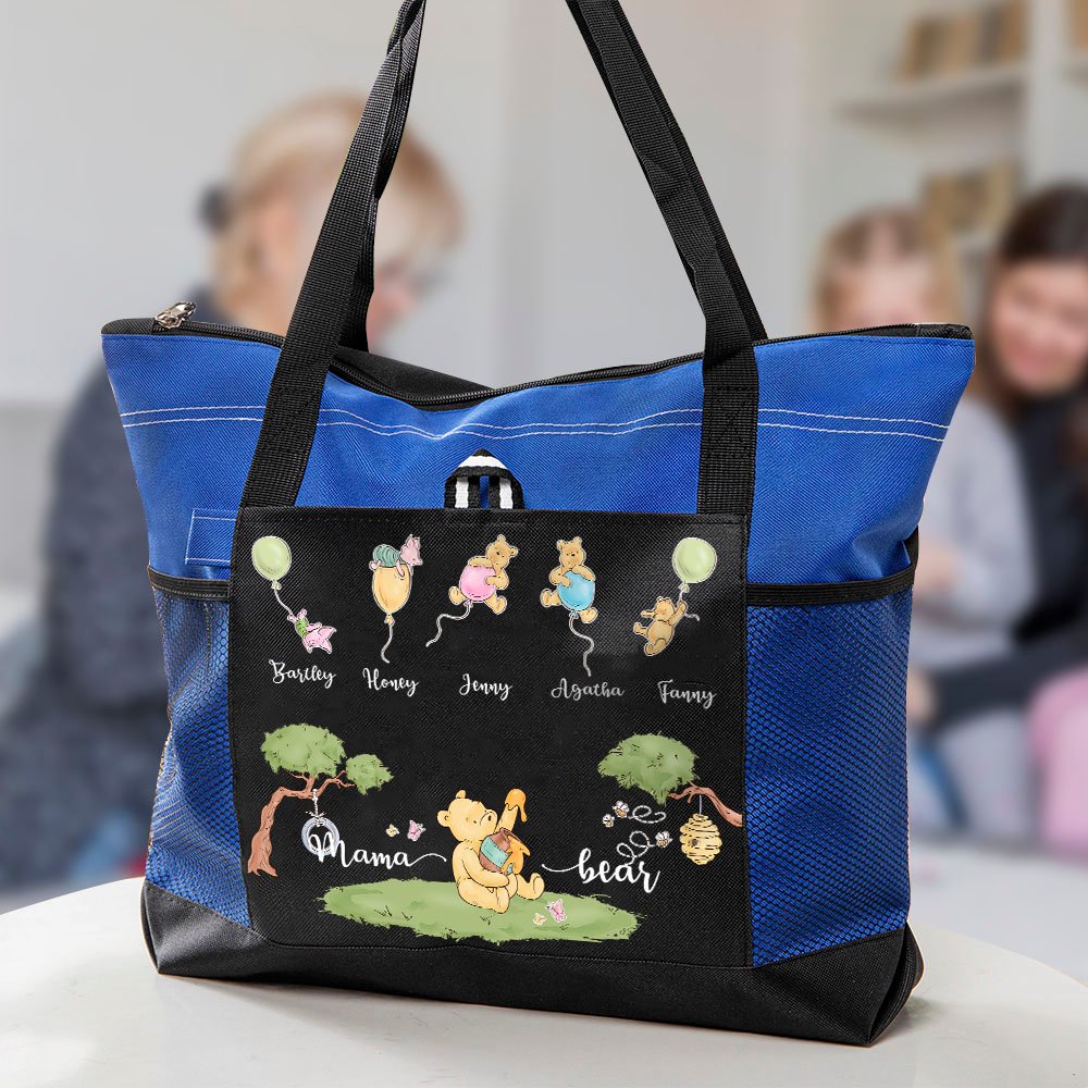 This tote bag perfectly combines an adorable mama bear in different postures with cuddly baby animals, surrounded by green grasses, trees, and butterflies, creating a playful and warm atmosphere. The endearing classic Winnie the Pooh was brought to life by the well-known author A. A. Milne and has deeply enchanted anyone. The bag also can be customized with 1-5 animals and the corresponding names of each family member to reflect your unique personality.