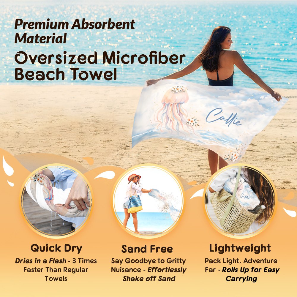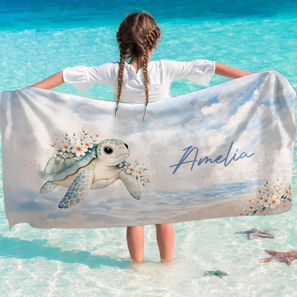 Featuring fresh watercolor-style marine animals as the core design, this beach towel perfectly captures the vibrant spirit of a summer beach, boasting a clean and eye-catching style. Personalized name customization is available, making each beach towel unique.