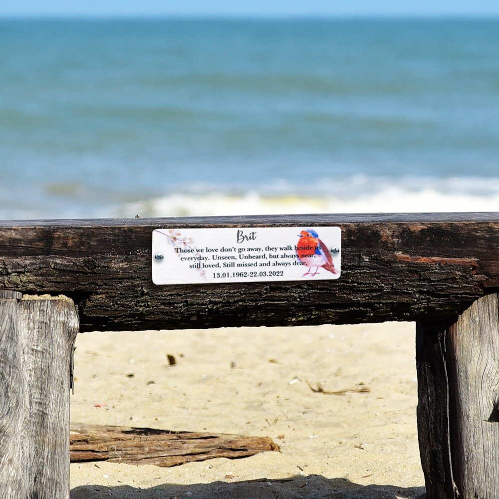Decorate your bench with this memorial plaque, you'll always feel a little bit closer to a loved one who has passed away. Anyone looking at this robin memorial plaque will find warmth and comfort in the memories. It tells the splendid life that has happened to a wonderful person.
