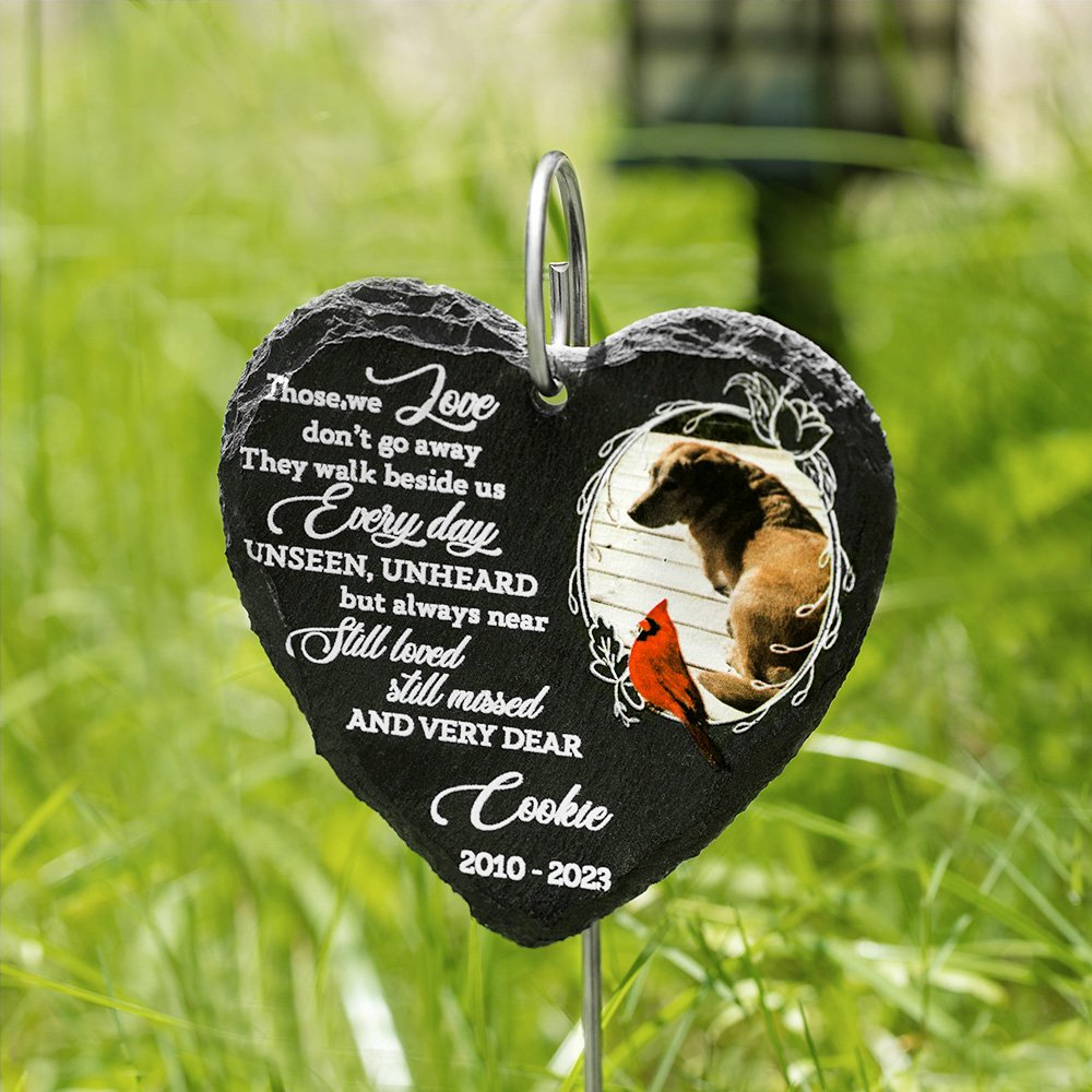 The slate can be customized with a personalized photo of your loved one and their name, adding a personal touch and making it a unique tribute. The photo serves as a constant reminder of the love and happiness shared with the departed.
