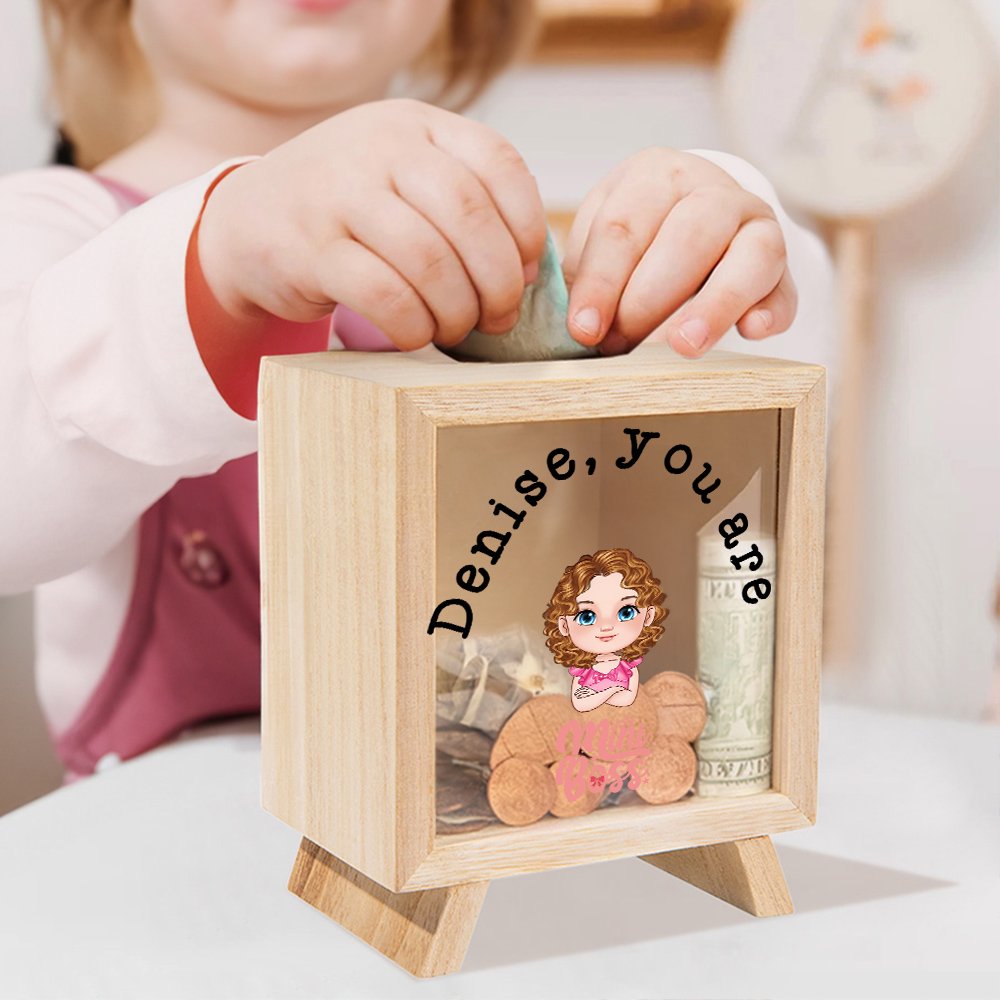 This piggy bank uses the cute “Mini Boss” cartoon character pattern. You can customize the child's cartoon image and name according to your preferences, which increases interactivity and fun.