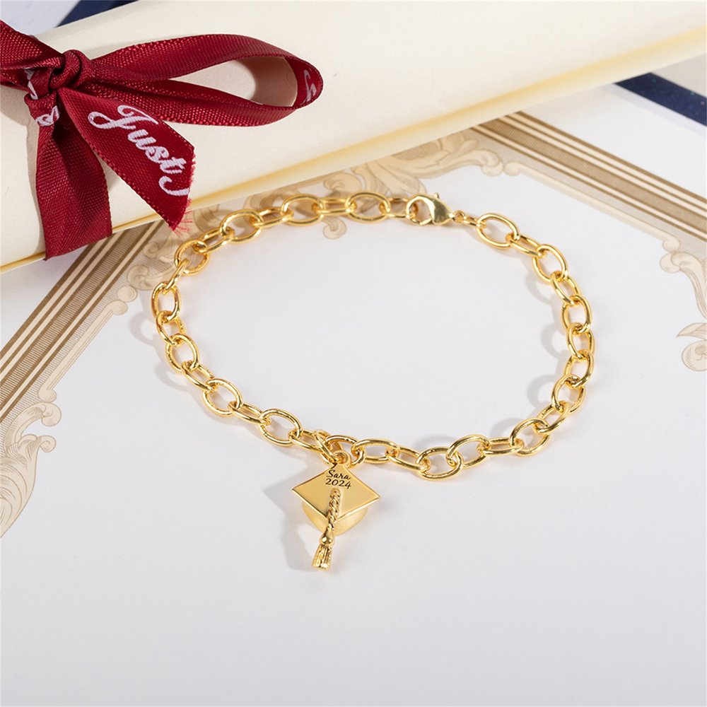 Personalized Minimalist Graduation Cap Pendant Bracelet with Engraved Name Graduation Gift for Graduates Class of 2025