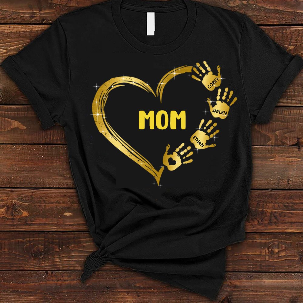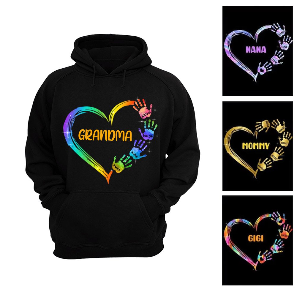 You can not only customize the title on the clothes but also the number and name of the palms, use these lovely palms to represent every family member, symbolizing the family's eternal love, unity, harmony in family feelings, mother or grandma wearing this would be very proud of a shirt made just for her.