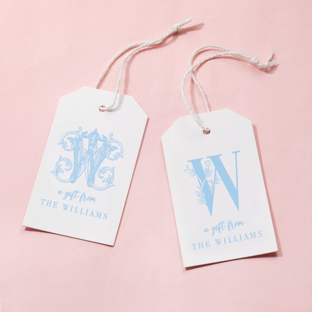 These monogrammed gift blessing tags are the perfect addition to any gift. With four different retro fonts to choose from, you can personalize these tags with names or family surnames of your choice. The classic and vintage gift tag adds a sophisticated look to the gift and also shows that you have put thought and effort into making the experience memorable for every gift receiver.