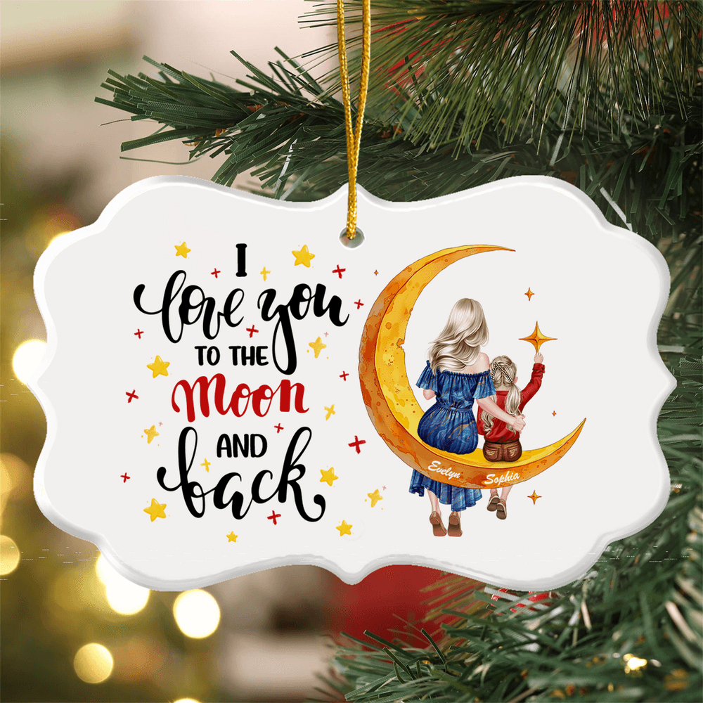 Centered around the silhouette of a mother and child, this piece features moon and star elements paired with a custom name and heartfelt message. Its romantic and cozy style radiates familial affection. The image of mother and child standing side by side holding a star conveys familial bonds and hopeful visions for the future, breaking away from the monotony of conventional ornaments to offer artistic appeal and emotional resonance.