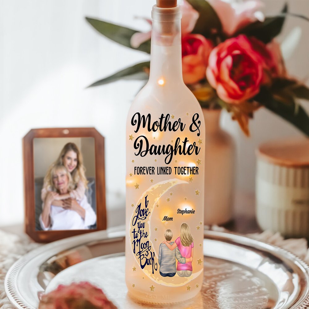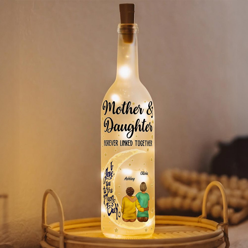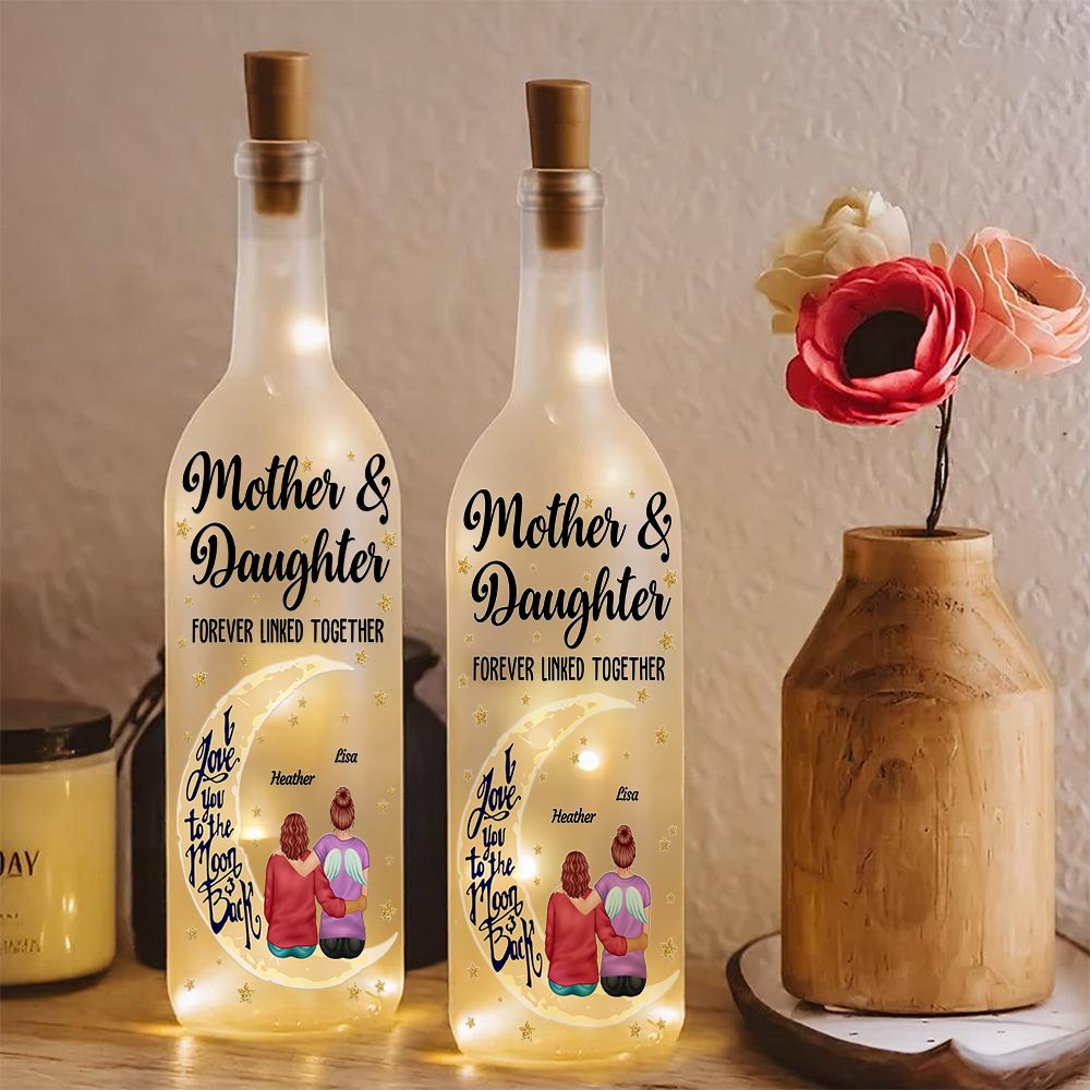 Personalized Moon Cartoon Mom and Daughter Forever Linked Together LED Bottle Lamp with Name Home Decor Mother's Day Birthday Gift for Mom Grandma