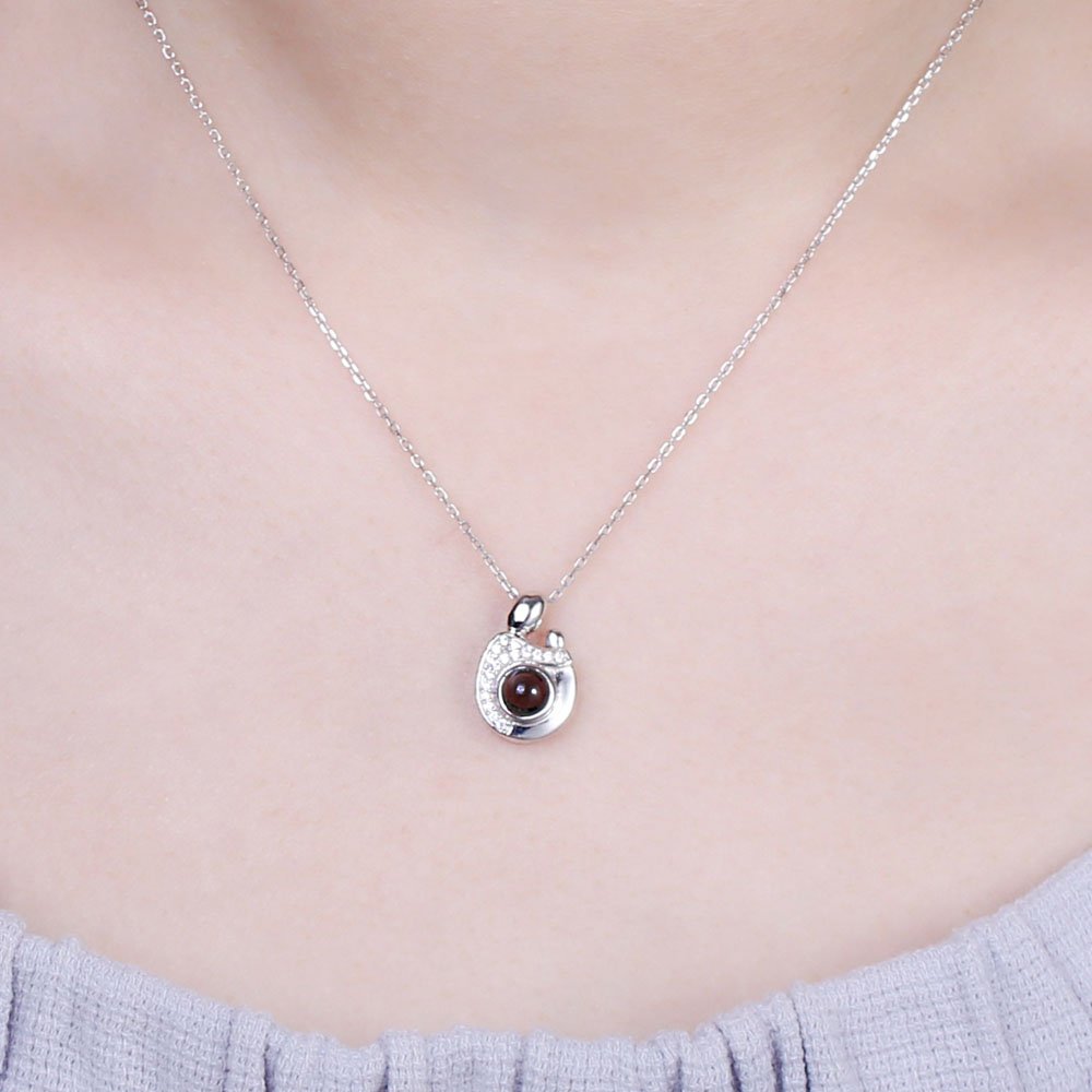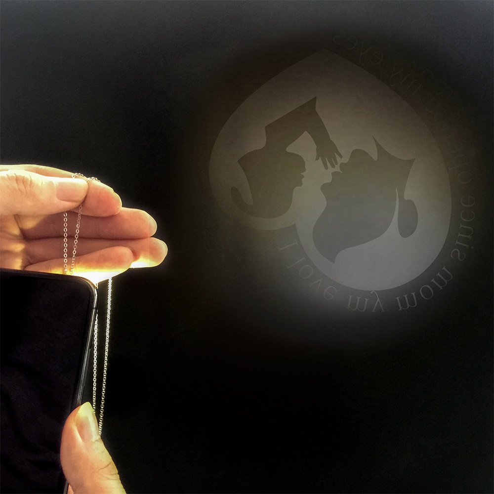 Featuring the outline of a mom holding her kids, this mini projection necklace conveys love between the mother and the child in a simple but meaningful way.