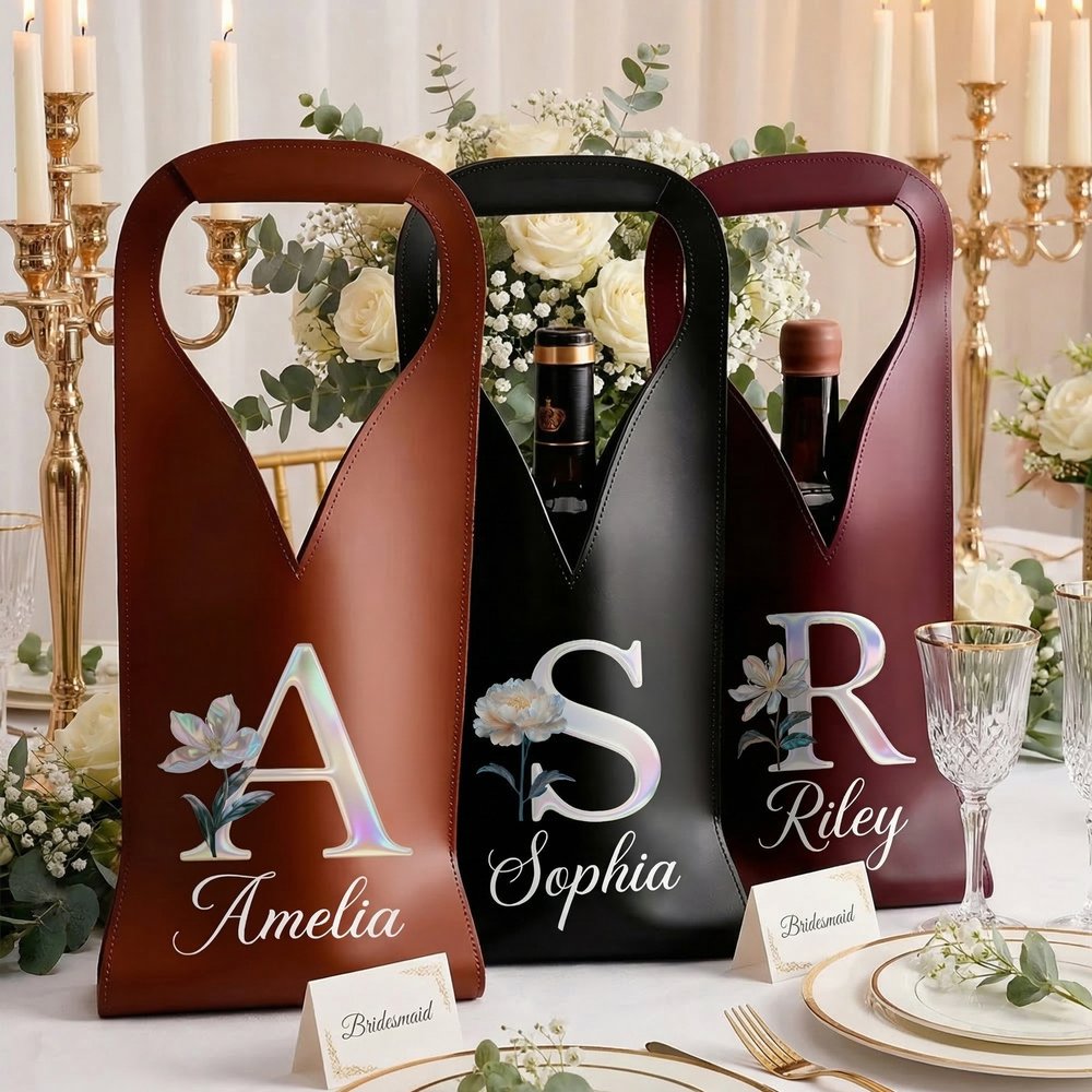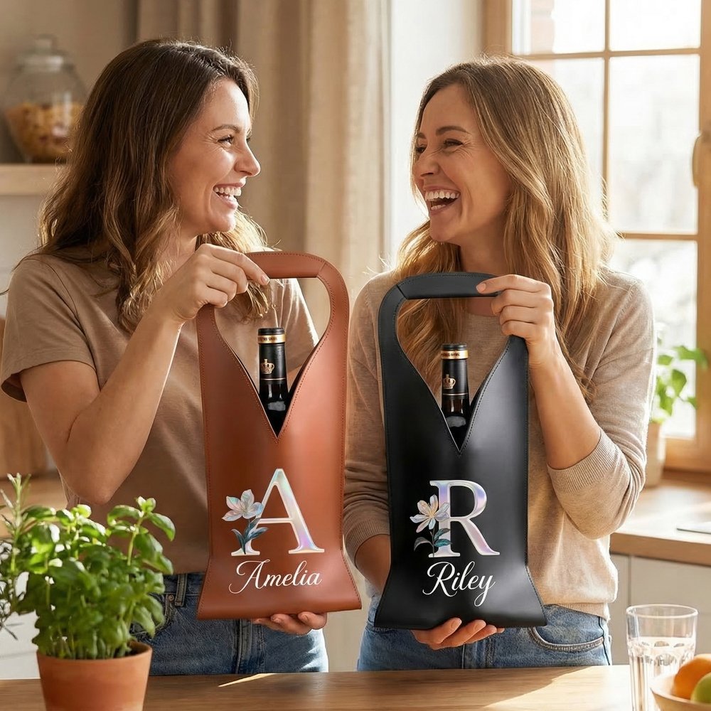 This wine bag exudes sophistication with its minimalist silhouette. The V-shaped opening makes it easy to access bottles while cleverly creating a visual focal point. Available in five colors to suit different aesthetic preferences. The mother-of-pearl textured lettering complements the corresponding birth flower pattern, and with a customizable name, it transforms the recipient's personal symbol into an art piece.