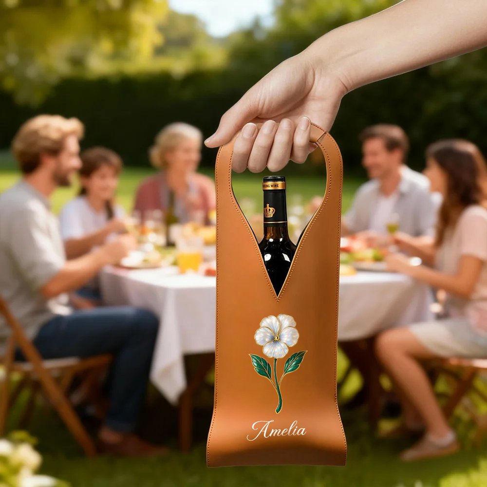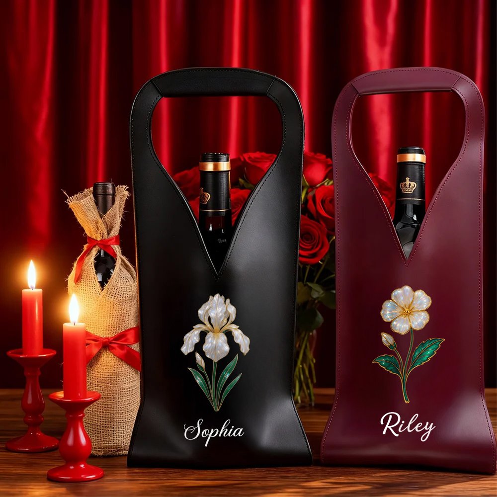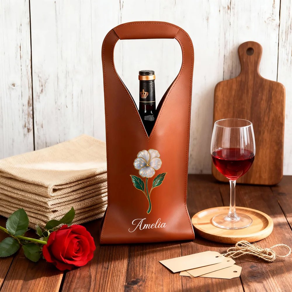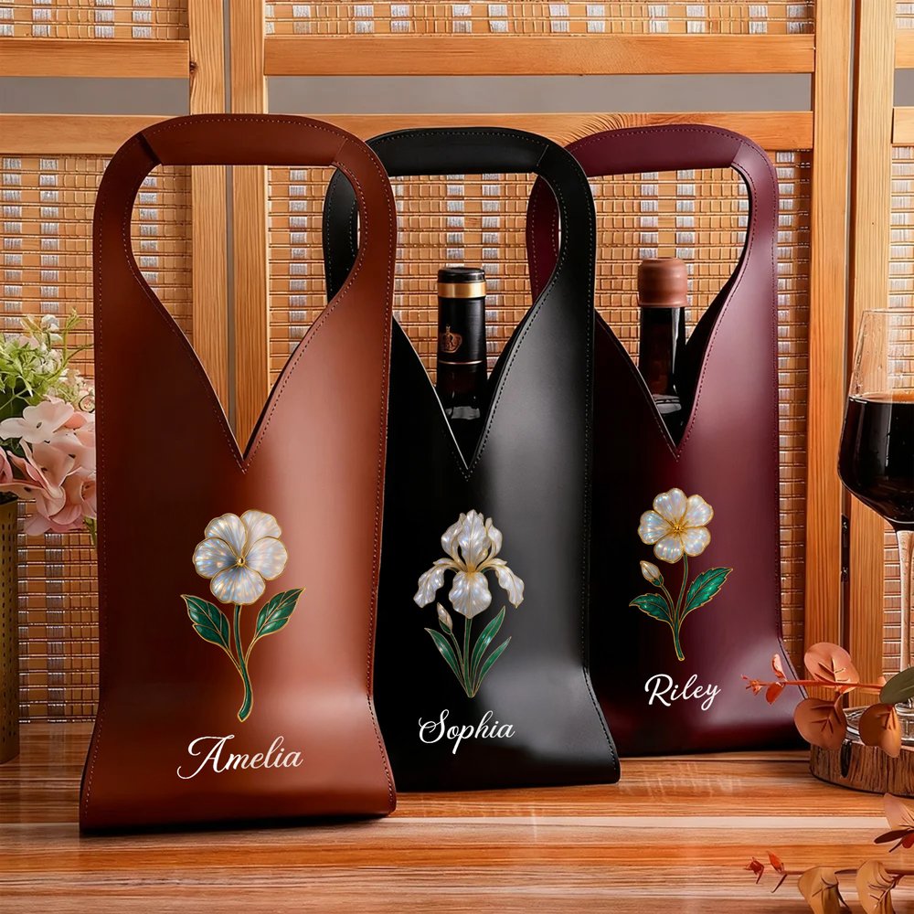 Featuring mother-of-pearl birth flowers and names as core elements, this customizable design boasts elegant and refined patterns, combining commemorative significance with aesthetic appeal, giving the wine bag a more personalized and unique style.