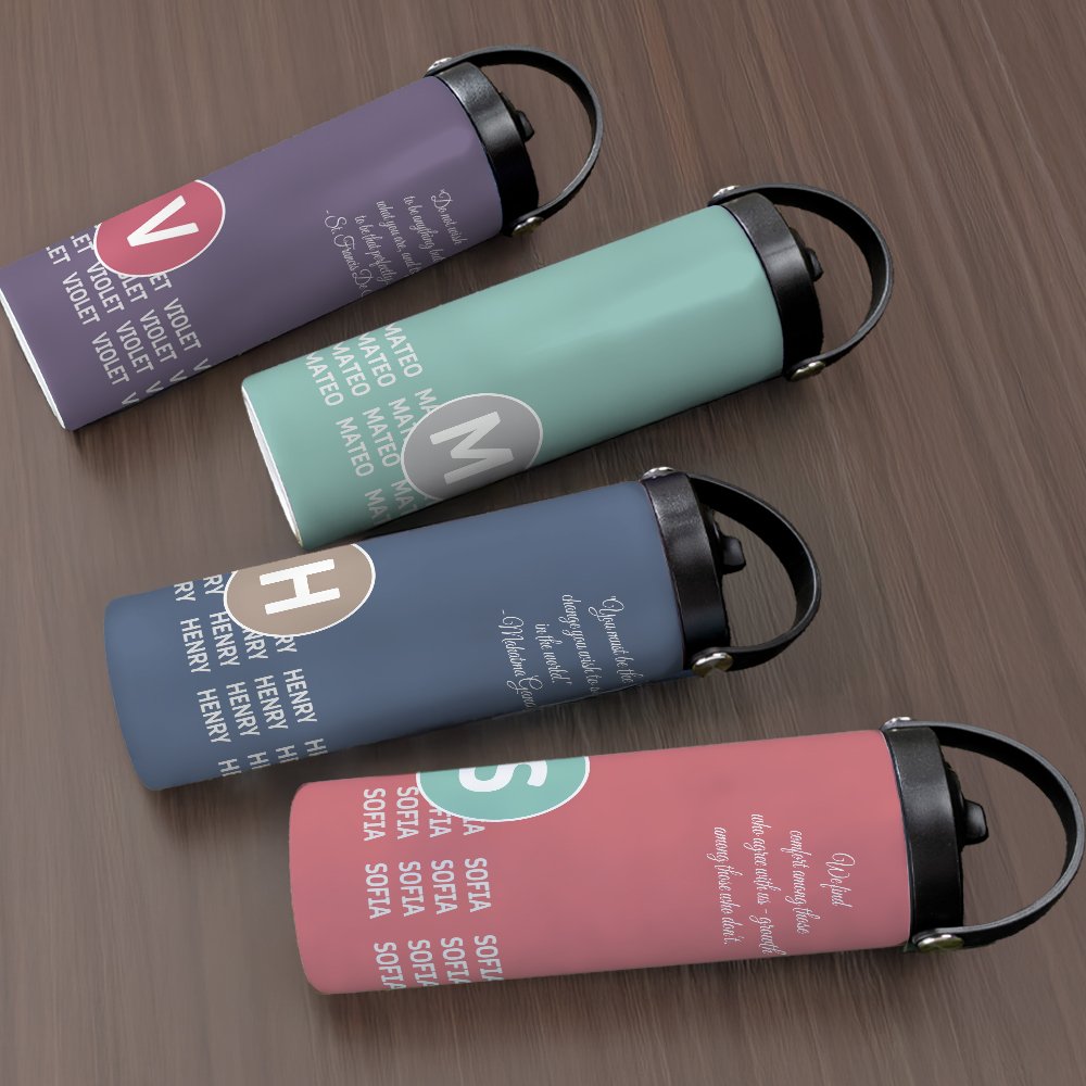 Featuring an inspiring quote and a customized initial, this tumbler offers constant encouragement wherever you go. The lower section showcases a unique pattern of personalized names, creating an exquisite and distinctive design.