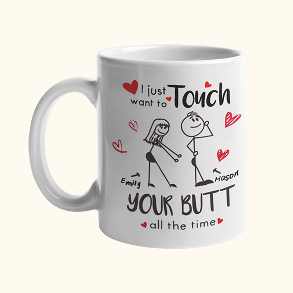 I Just Want To Touch Your Butt All The Time . The Best Valentine Matching Couples Mug For Boyfriend or Girlfriend. Customized Mug With Names.
