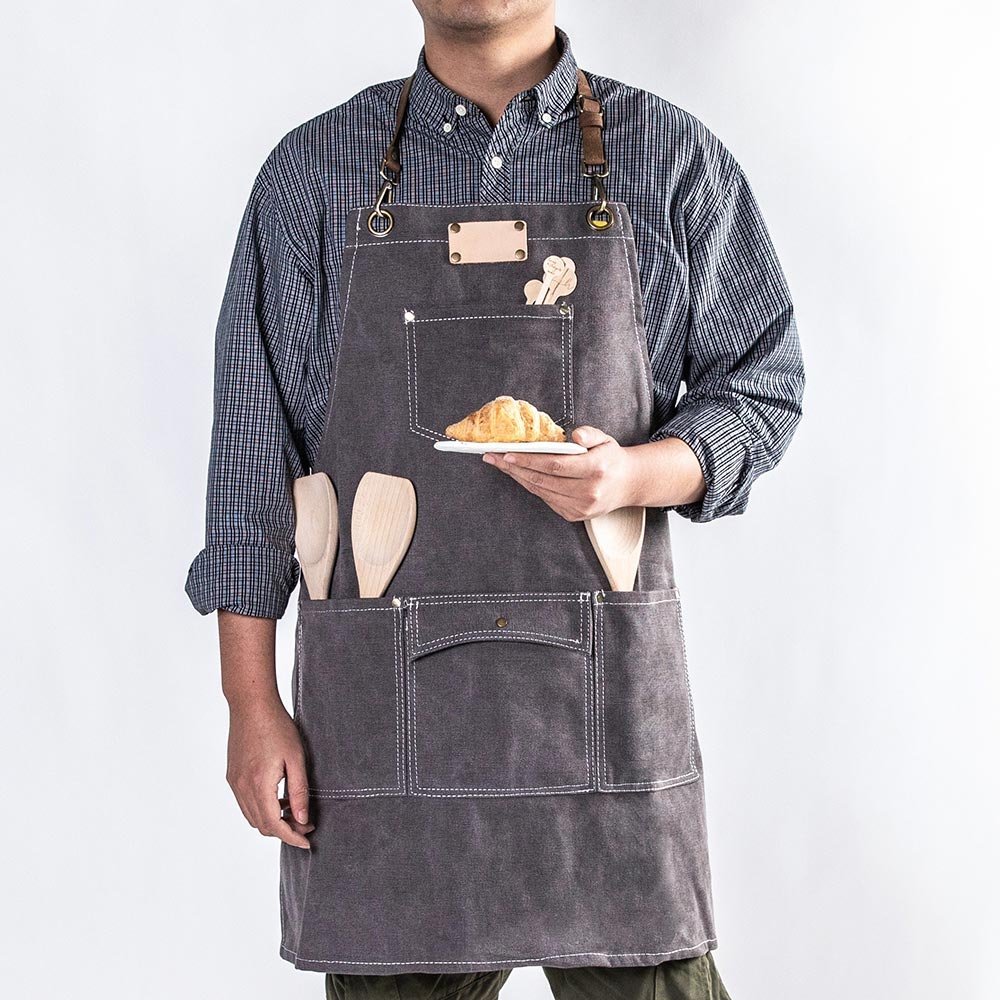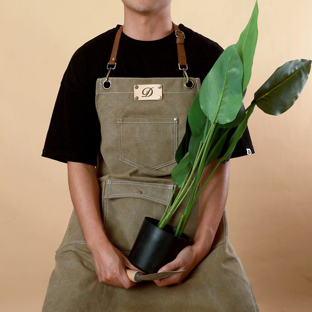 •Work in style with these personalized fashionable cotton aprons with pockets. Customization and logo showing the chic and unique style, simple and durable, the design is inspired by Japanese simplicity, which is popular in recent years. Both neck straps and back straps can be adjusted by the users according to his/her size. Roomy pockets are perfect for holding smartphones and small tools.