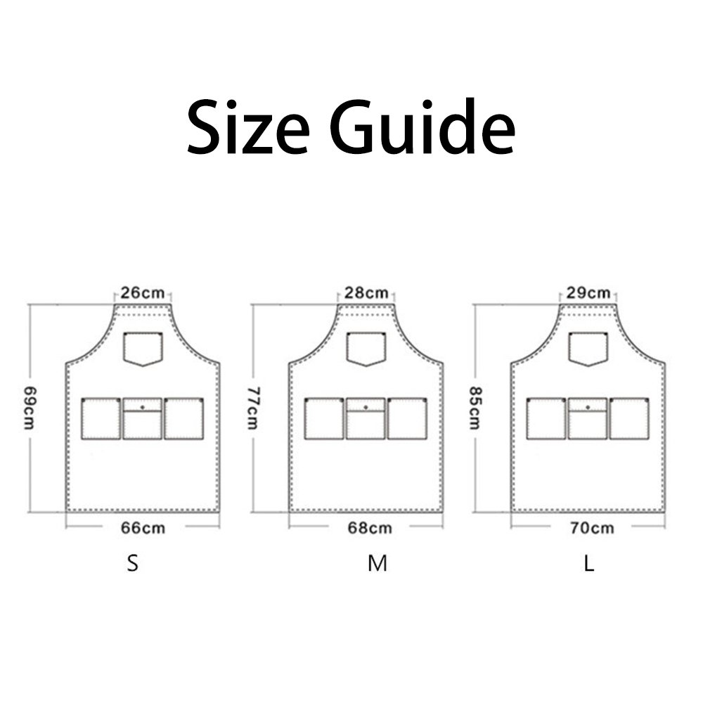 Apron Size: S: 27''*26''( 69cm*66cm) / M: 30.3''*26.7''(77cm*68cm) / L: 33.4''*27.5''(85cm*70cm)