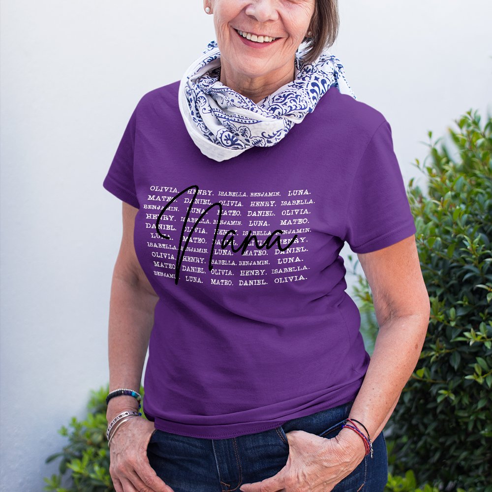 Personalized Multicolor 1-20 Names Soft Crewneck T-shirt Sweatshirt with Title Mother's Day Birthday Gift for Mom Grandma