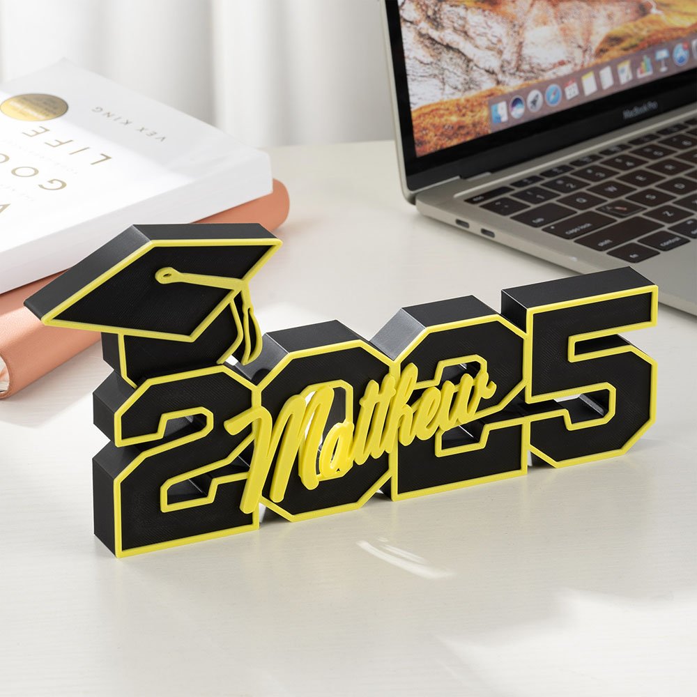 Celebrate academic achievement with our personalized nameplate. This eye-catching desk decoration features a beautiful graduation cap element designed in the shape of the year's numerals, and the bright colors add a dynamic touch, making it stand out in any environment. You can also customize the name, which not only symbolizes the hard work and dedication of the graduate but also permanently remembers their achievements.